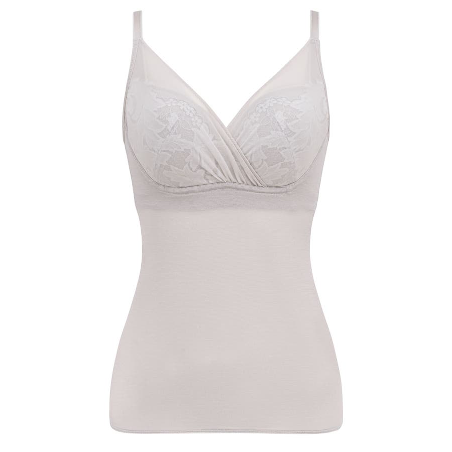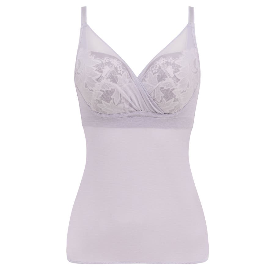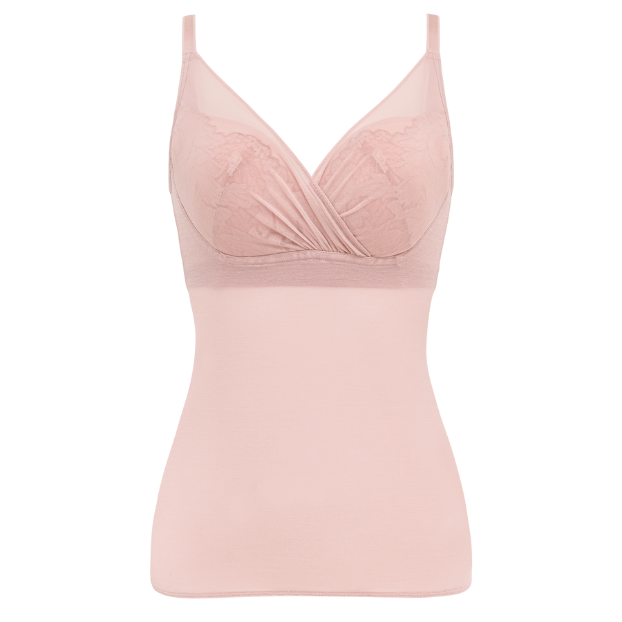 春先を告げる新緑をイメージした爽やかなリーフ柄レースを使用した、補整ノンワイヤーブラキャミです。