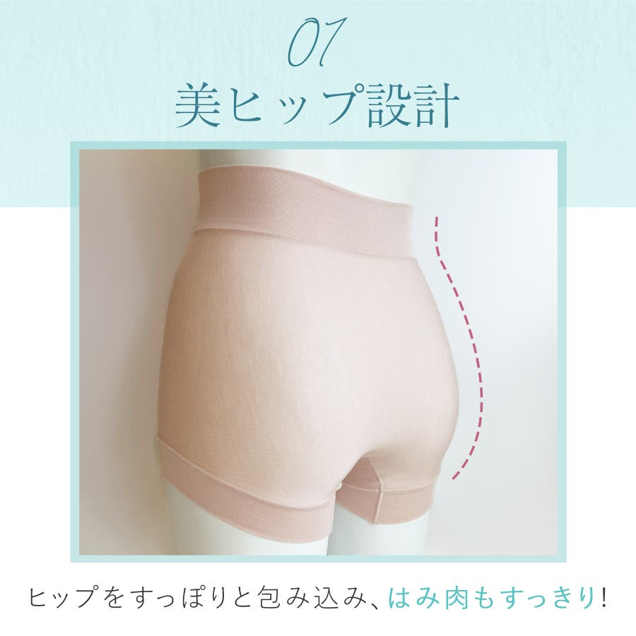 ウエストからヒップ下まですっぽりと包み込み、腰肉までカバーするハイウエスト仕様です。