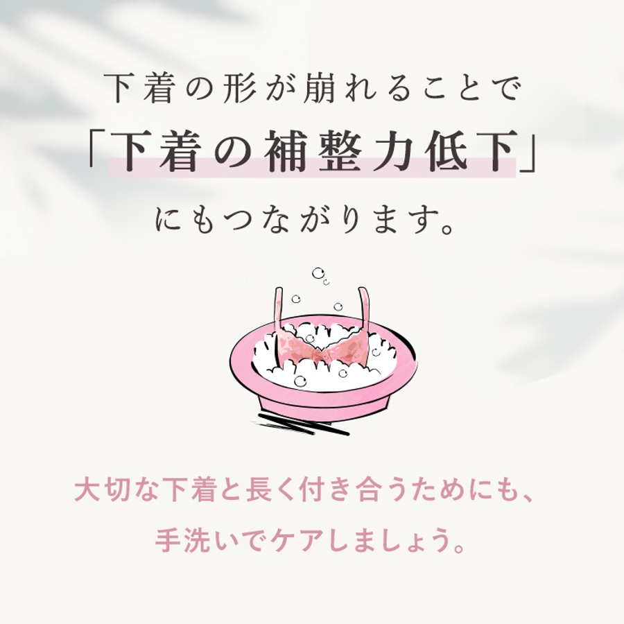 洋服用の洗剤と比べ、柔軟剤が入っていないため補整機能を保つことができ、補整下着の寿命を長持ちさせます。