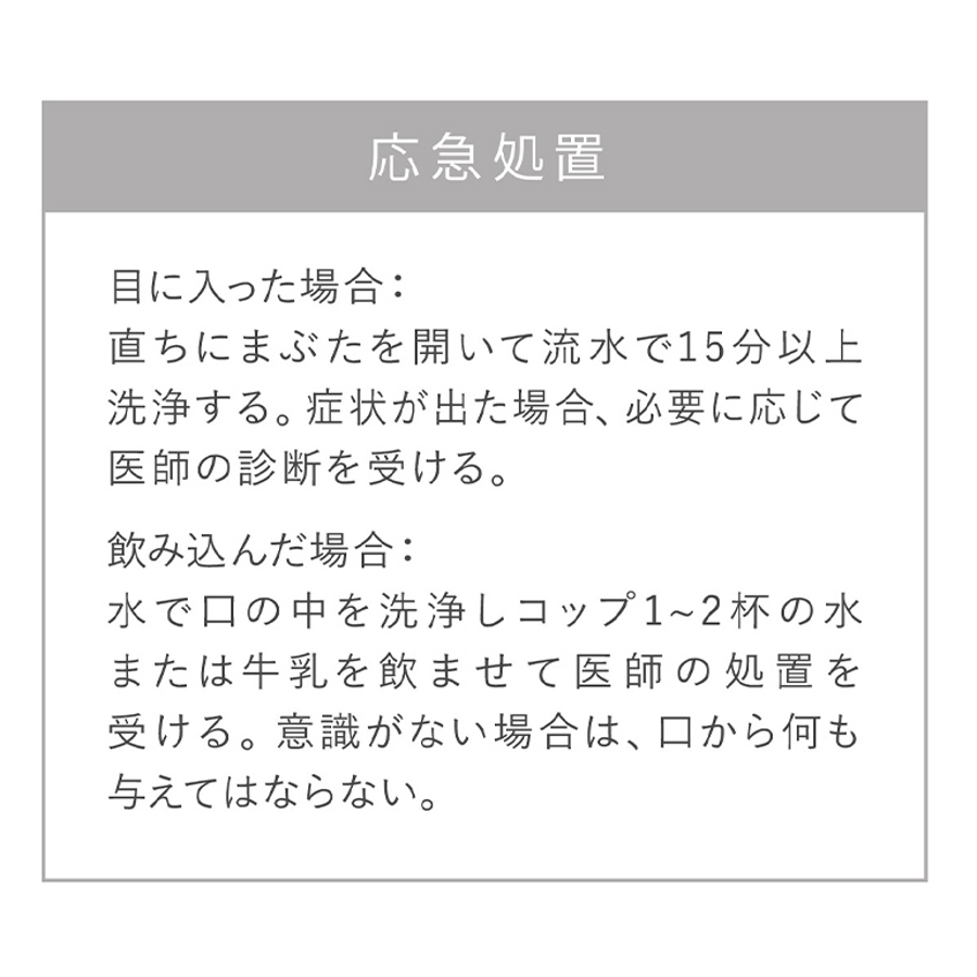 ・目に入った場合は水で洗い流し、刺激が残る場合は医師に相談すること。