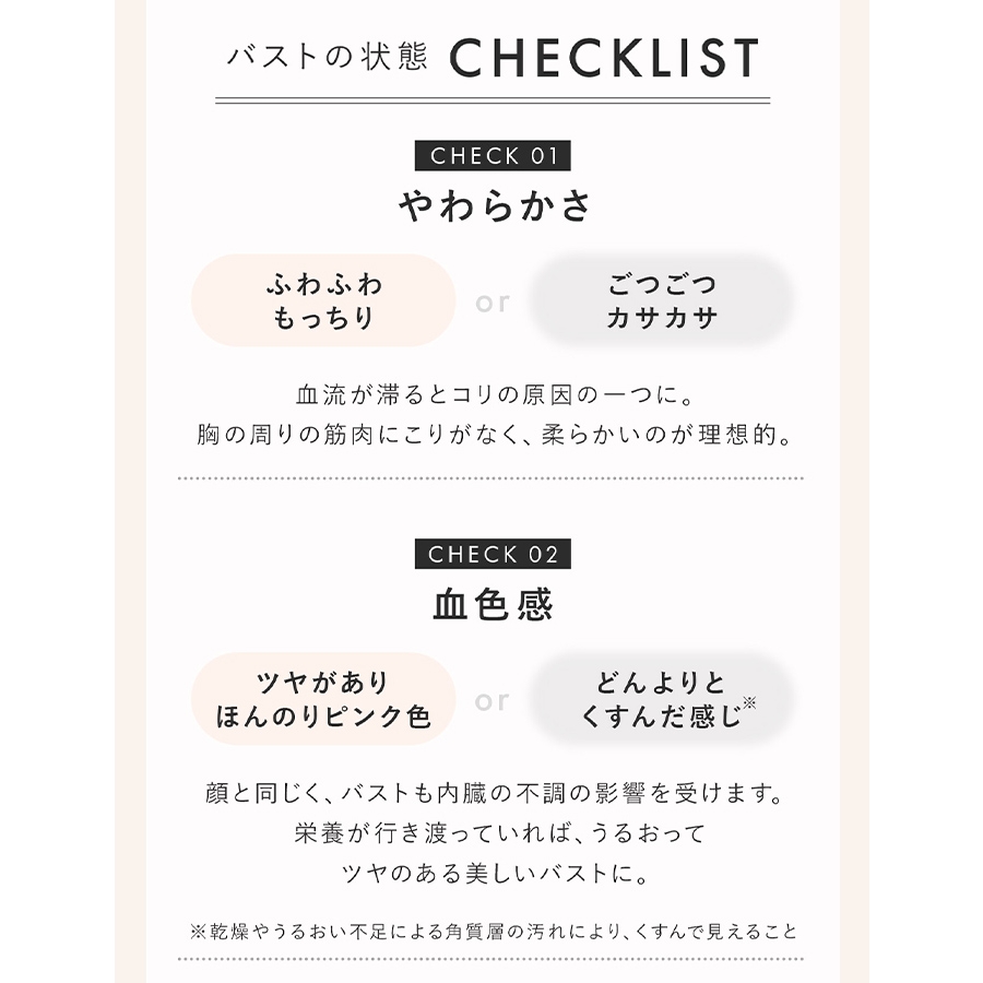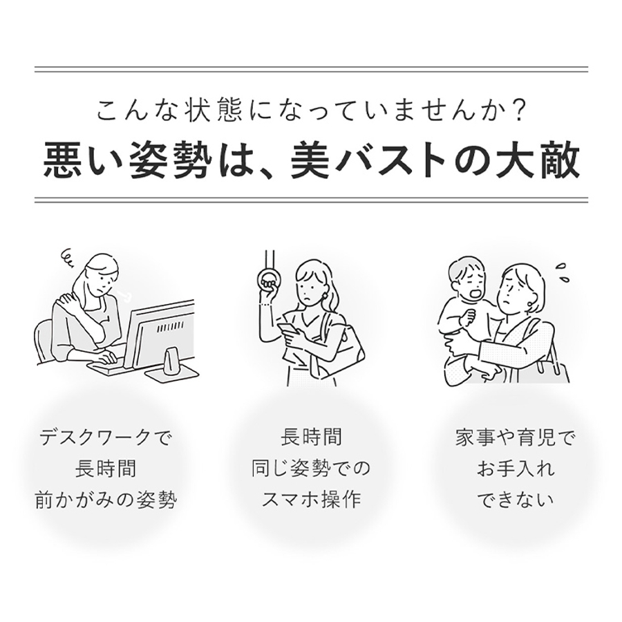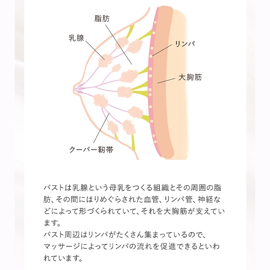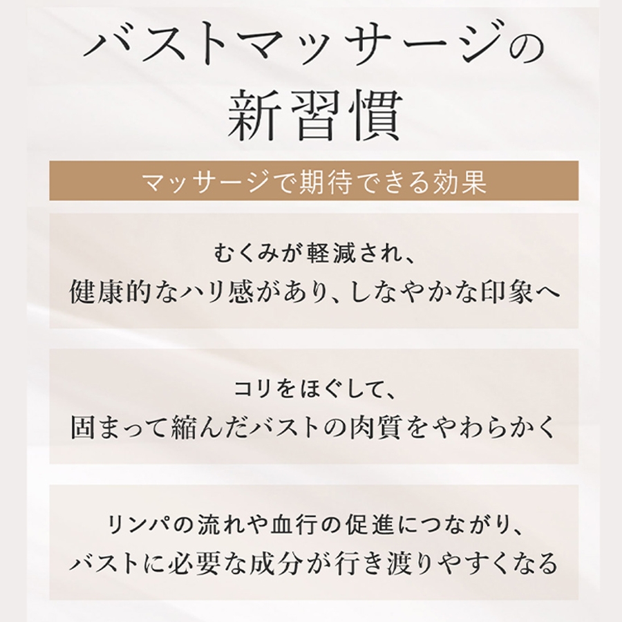バストマッサージで凝り固まった筋肉をほぐし、バストの成長に必要な成分を届けます。