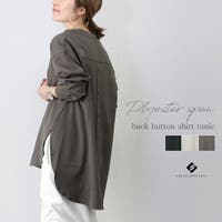 エステルスパン後ろボタンスキッパーシャツチュニック
