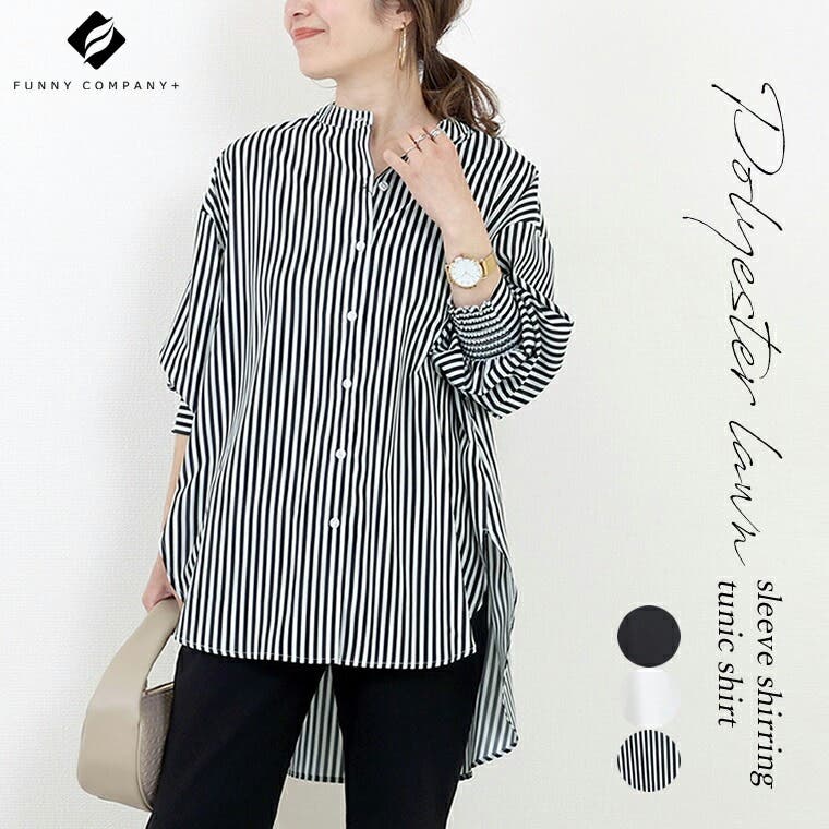 バンドカラーエステルスパンシャツチュニック