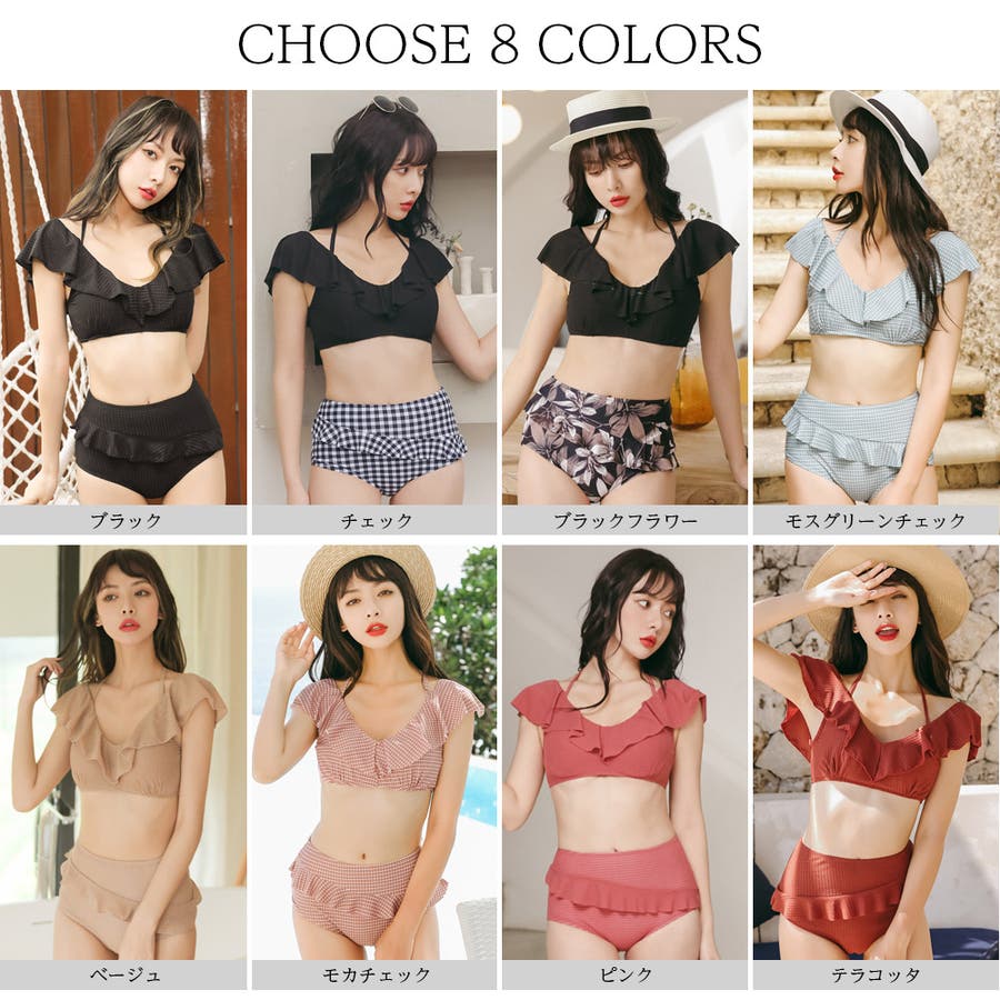 可愛いトレンドデザインだけでなく袖のフリルや、ハイウエストなど