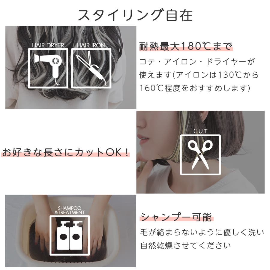 ドライヤー、コテ、アイロン等で好みの髪型に整えることができます。(耐熱最大温度180度まで)※1