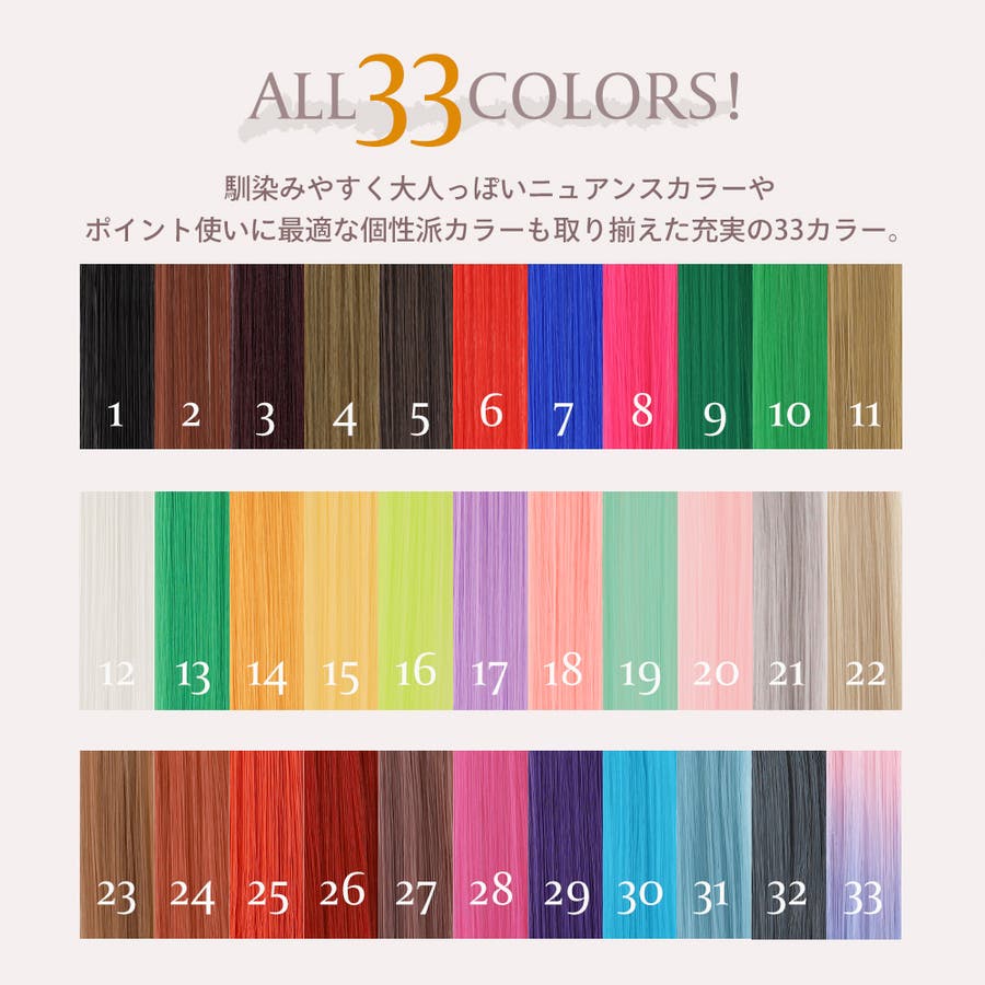 | カラー | 2.モカストロベリー / 3.ワインブラウン / 4.ミルクティー / 6.バーミリオン / 7.コバルトブルー / 8.ホットピンク / 9.ダークグリーン / 10.ライトグリーン / 12.ホワイトグレー / 13.エメラルドグリーン / 14.ゴールドイエロー / 15.パステルイエロー / 16.ライムグリーン / 17.ラベンダー / 18.ローズピンク / 19.ミントブルー / 20.サクラピンク / 1.ブラック / 5.ショコラブラウン / 11.アイボリー / 21.シルバーアッシュ / 22.ホワイトベージュ / 23.ミルキーベージュ / 24.テラコッタベージュ / 25.テラコッタオレンジ / 26.チョコレートレッド / 27.ストロベリーラテ / 28.マゼンタ / 29.パープル / 30.アクアマリン / 31.スカイブルー / 32.フォギーブルー / 33.サクラピンク&スティールブルー |