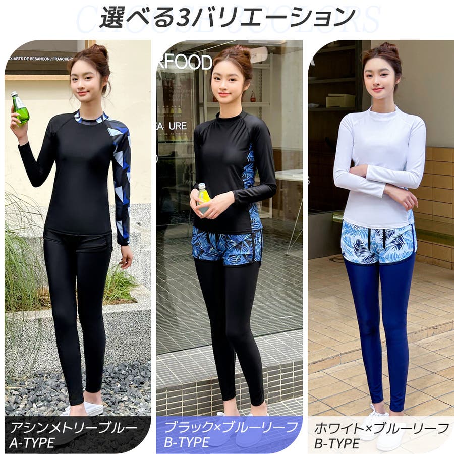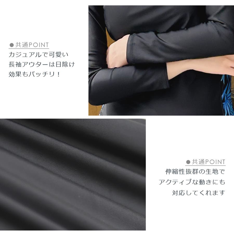 ストレスフリーなノンワイヤーなのでアクティブなシーンでも動きやすく快適です。レギンスも付いているので、足先まで日焼け防止&怪我防止の効果も!