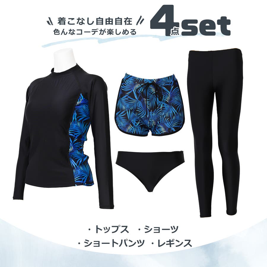水着 レディース フィットネス水着 スポーツウェア トレーニングウェア 4点セット セット 水陸両用 ランニングウェア ウォーキング セットアップ ジムウェア スポブラ ジム ヨガ 露出控えめ 高校生 中学生 水泳 授業 ママ 30代 40代 スポーツブラ ショートパンツ サーフィン 川遊び 川 黒 ブラック ホワイト 白 ブルー 花柄 おしゃれ 韓国
