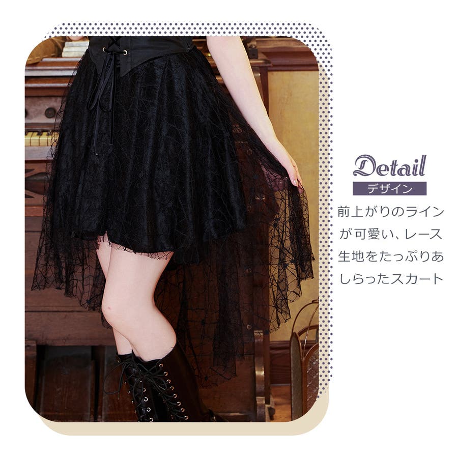 ・前上がりのラインが可愛い、レース生地をたっぷりあしらったスカート