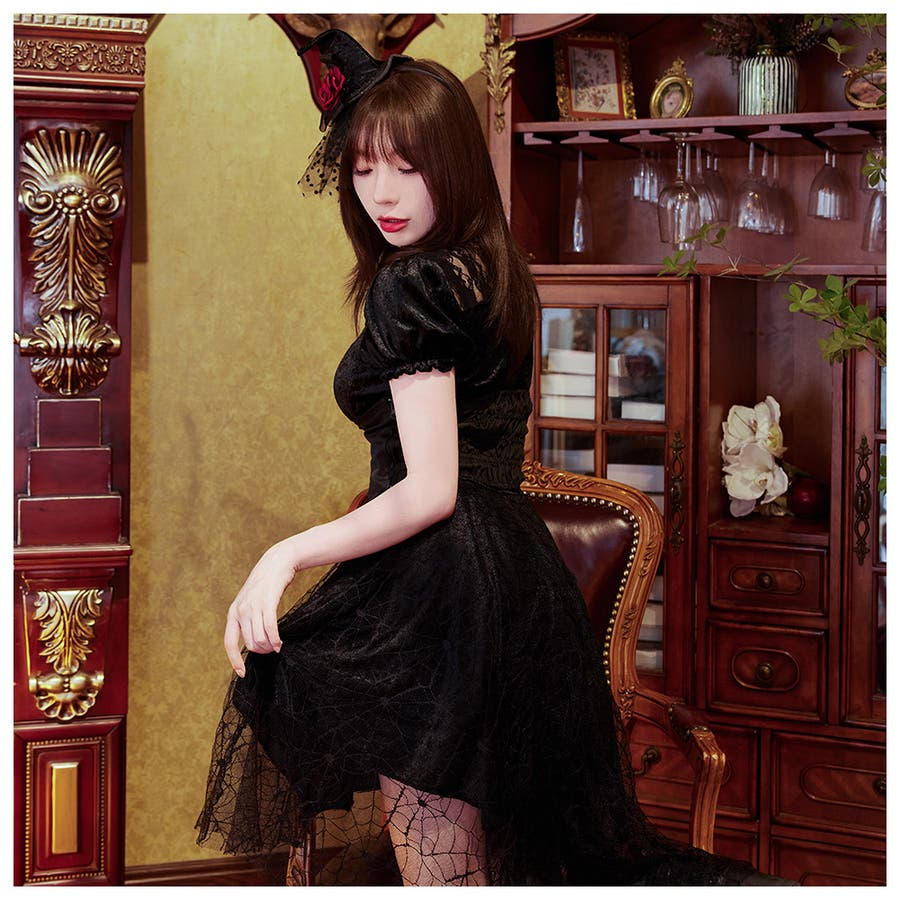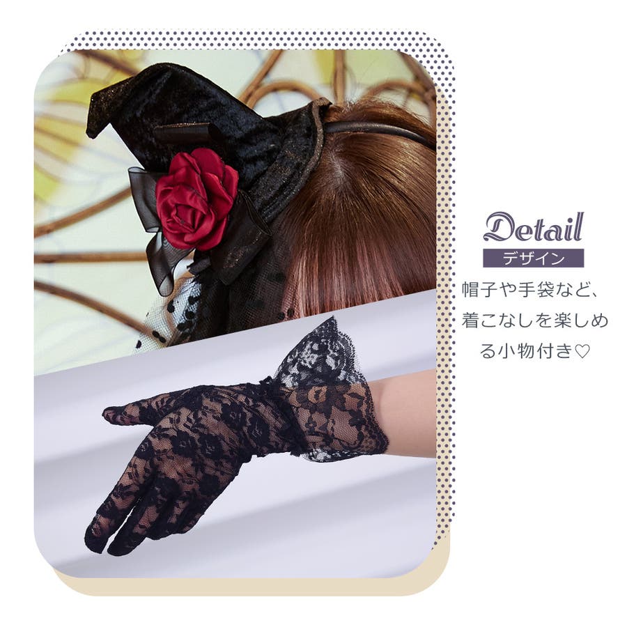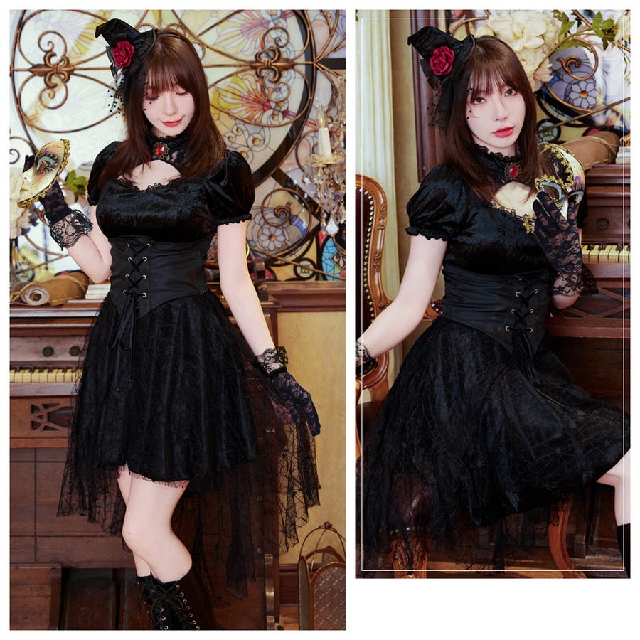 ワンピース、コルセット風パーツ、帽子風カチューシャ、手袋がセットになっていて、購入してすぐ着用できるところもポイント。