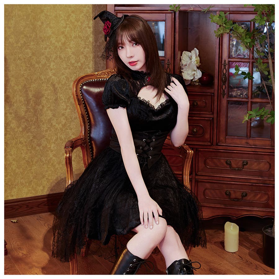ダークな黒レースやフリルの装飾で、まるで西洋の洋館に住まう魔女の雰囲気バッチリ。