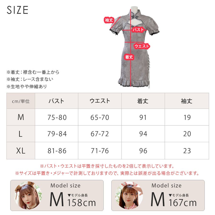 【Lサイズ】バスト:79-84 ウエスト:67-72 着丈:94 袖丈:20
