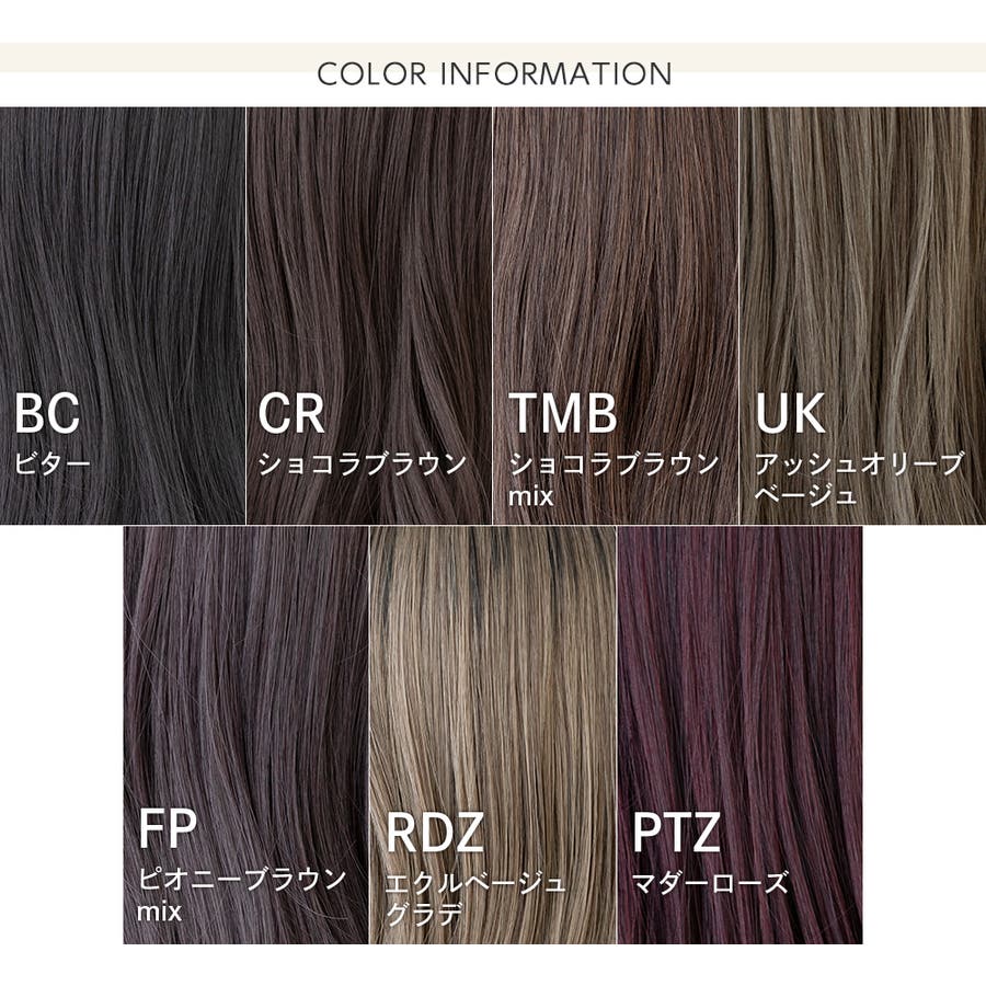 カラー | BCビター / CRショコラブラウン / TMBショコラブラウンmix / UKアッシュオリーブベージュ / FPピオニーブラウンmix / RDZエクルベージュグラデ / PTZマダーローズ |