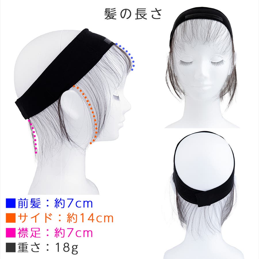 うぶ毛付きウィッグバンドを付けることによって、風がふいたり、耳かけをしても自然なウィッグスタイルを楽しんでいただけます。ウィッグでヘアアレンジをするときにもおくれ毛が出来ておすすめ。お顔とのバランスを考えて前髪・サイド・えりあしでうぶ毛の長さを変えています。