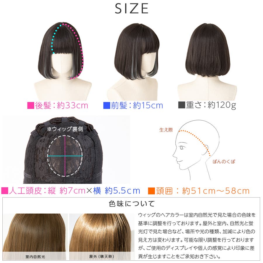定番で着用しやすいボブスタイル。肩にかかるかかからないかぐらいの長さで顎ラインと頬回りをしっかりとカバーしてくれます。