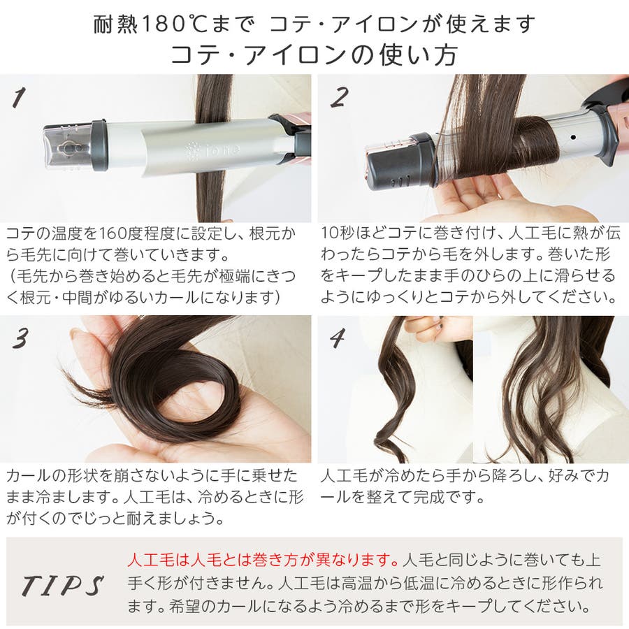 ドライヤー、コテ、アイロン等で好みの髪型に整えることができます。「耐熱温度最大180度」※1