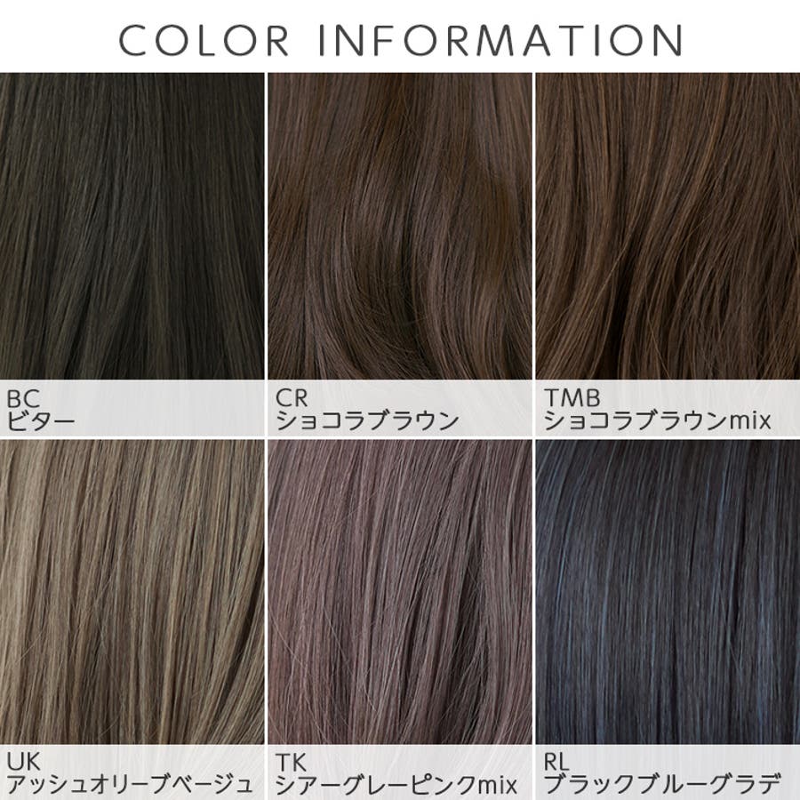 | カラー | BCビター / CRショコラブラウン / TMBショコラブラウンmix / UKアッシュオリーブベージュ / TKシアーグレーピンクmix / RLブラックブルーグラデ |