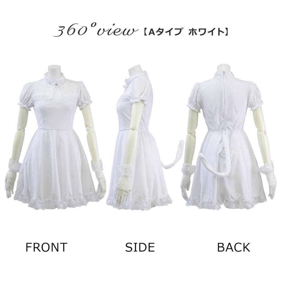 シンプルなミニドレススタイルに尻尾、耳などがセットになったスタイルは、飾りすぎないシンプルなコスプレ衣装として多くの方に愛される定番人気のコスチューム。