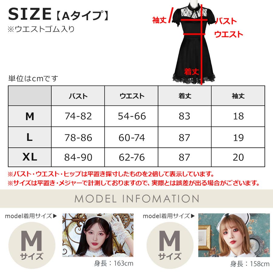 【Mサイズ】バスト:74-82 ウエスト:54-66 着丈:83 袖丈:18