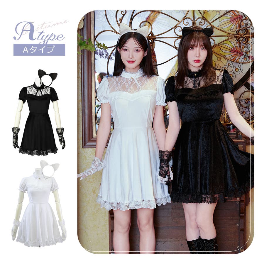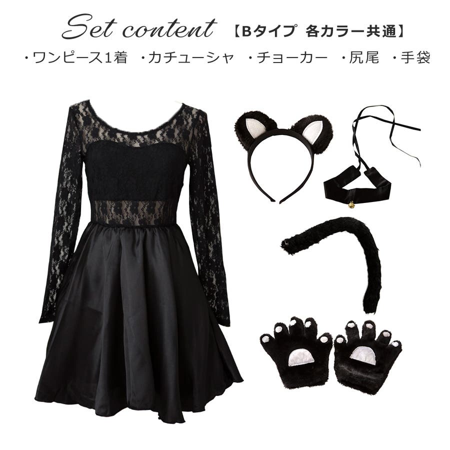 【Bタイプ】・ワンピース ・カチューシャ ・首輪 ・尻尾 ・手袋