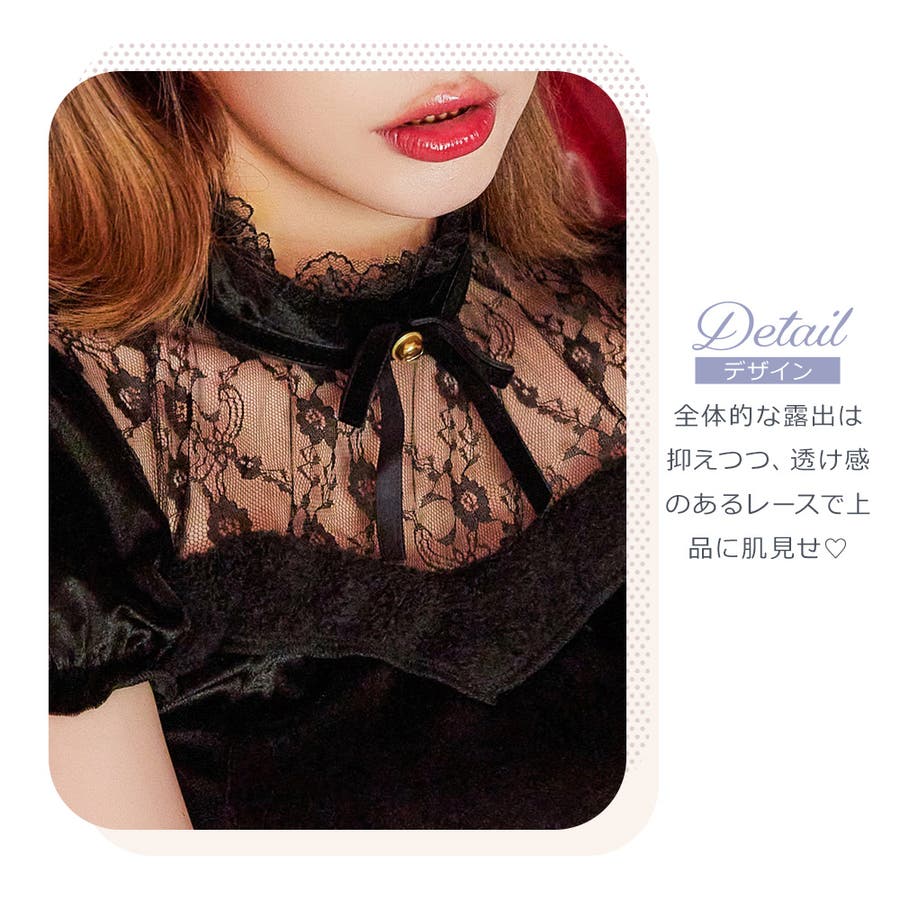 Aタイプは、全体的な露出は抑えつつ、透け感のあるレースで上品に肌見せ。また、ベロア調の生地を使用し、上品な艶感で高級感のある仕上がりになっています。