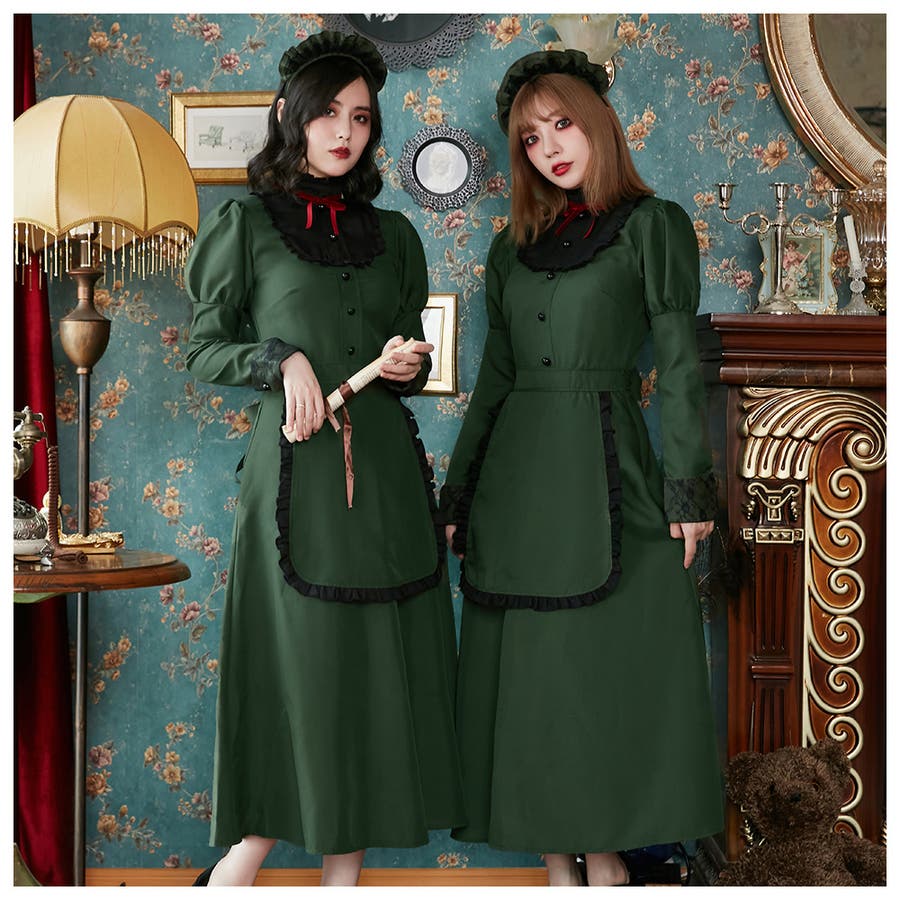 ブライトララ コスプレ ハロウィン 仮装 メイド メイド服 洋館メイド 緑 ロング ハロウィンコスプレ 大人 女性 可愛い 大きいサイズ レディース かわいい 衣装 コスチューム ハロウィン仮装 コスプレ衣装 コスプレ仮装 お嬢様 レトロ クラシカル ゴシック ゴスロリ ロリータ ハロウィーン グリーン ドレス コス こすぷれ かっこいい パーティー 仮装パーティー 誕生日 結婚式 余興 M L XL レッド 赤 ダークレッド 青 ネイビー