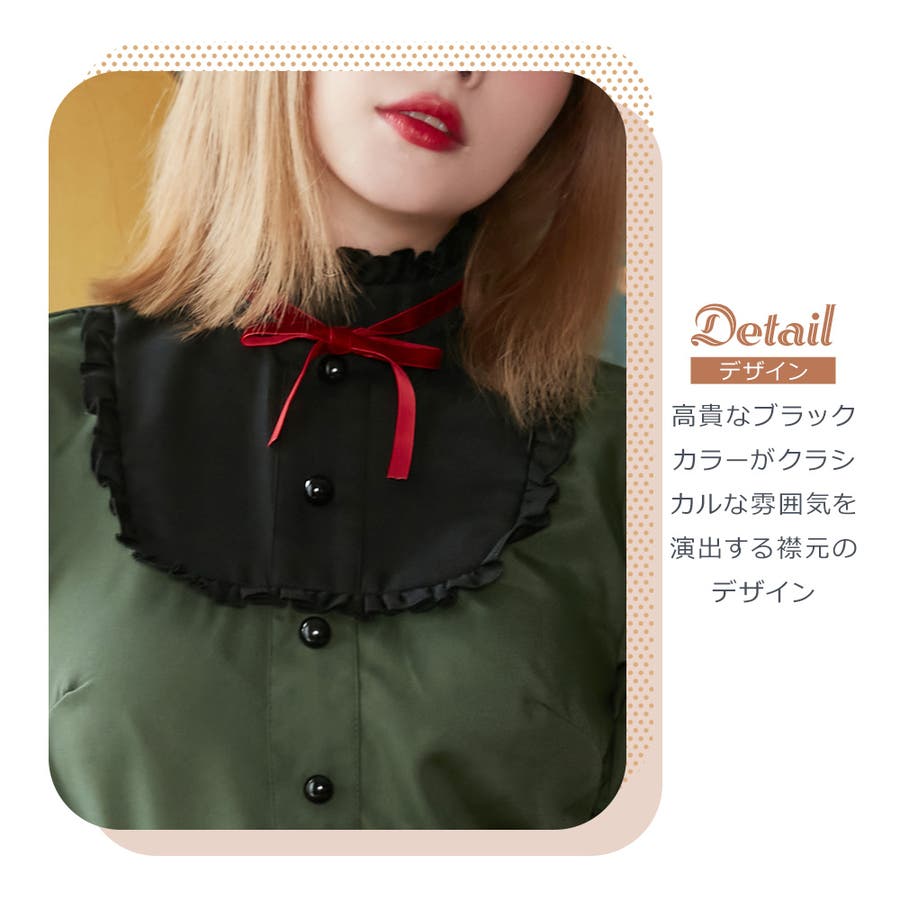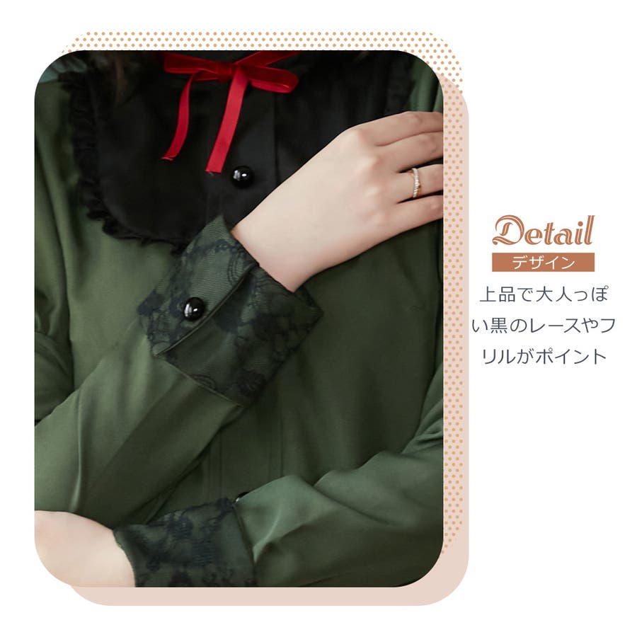 高貴な雰囲気ただようロング丈ワンピースにダークな黒レースやフリルの装飾で一気に雰囲気アップ。