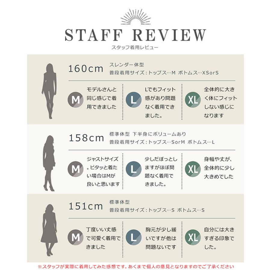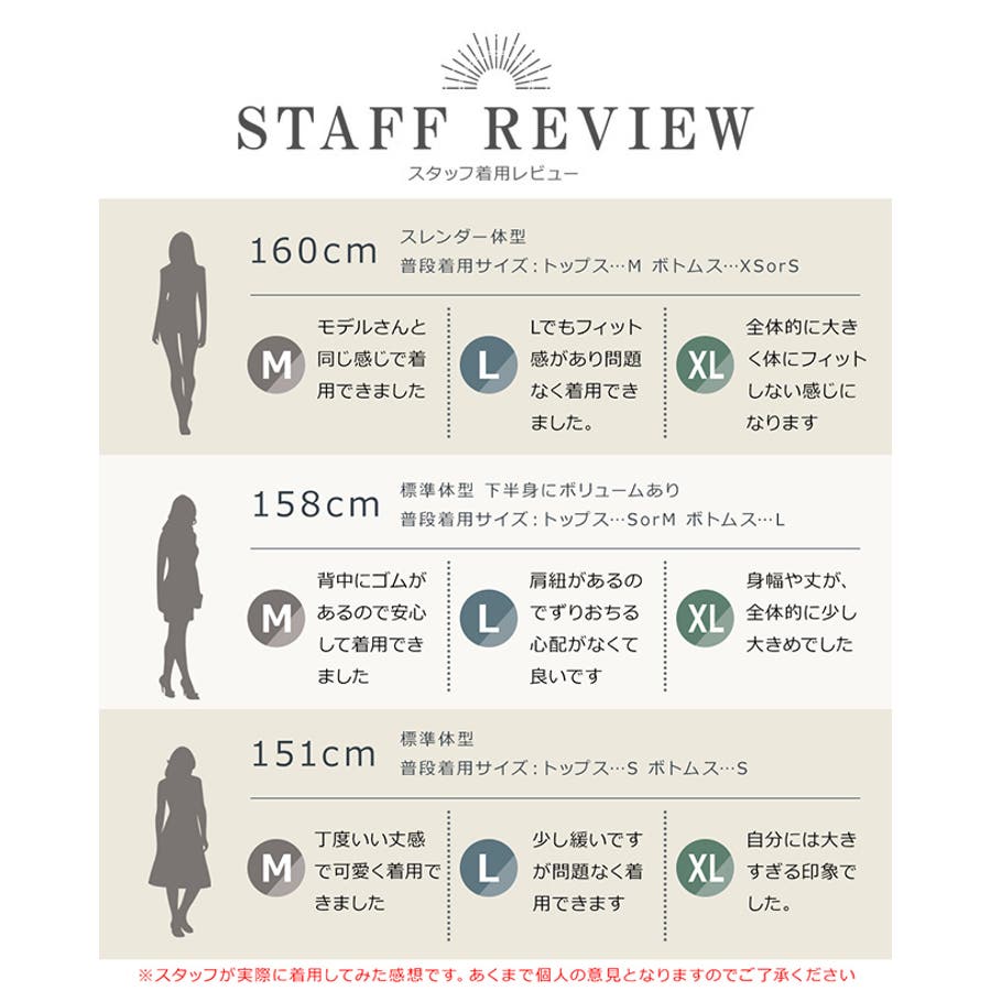 投稿日:2020.09.25デザインはすごく可愛くて気に入ったのですが丈がすごく短くパンツが見えそうになります。それが気になる方は大きめでも大丈夫だと思います!