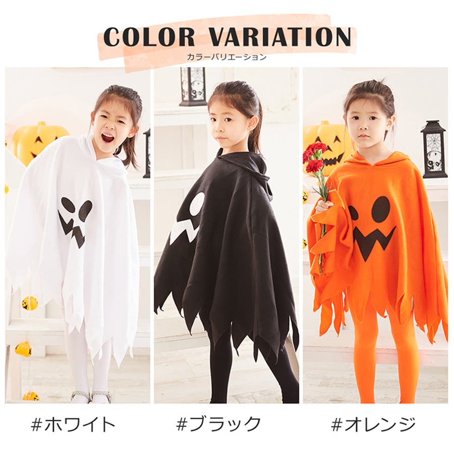 ハロウィーン コスプレ ハロウィン 衣装 子供 お化け ポンチョ キッズ 遊園地 テーマパーク 変身 なりきり コス ハロウィーン ベビー 寝相アート お遊戯会 クリスマス 記念日 誕生日 文化祭 小学生 幼稚園 男女兼用 ハロウィン子供 ホワイト 白 ブラック 黒 オレンジ 100 110 120 130 cm
