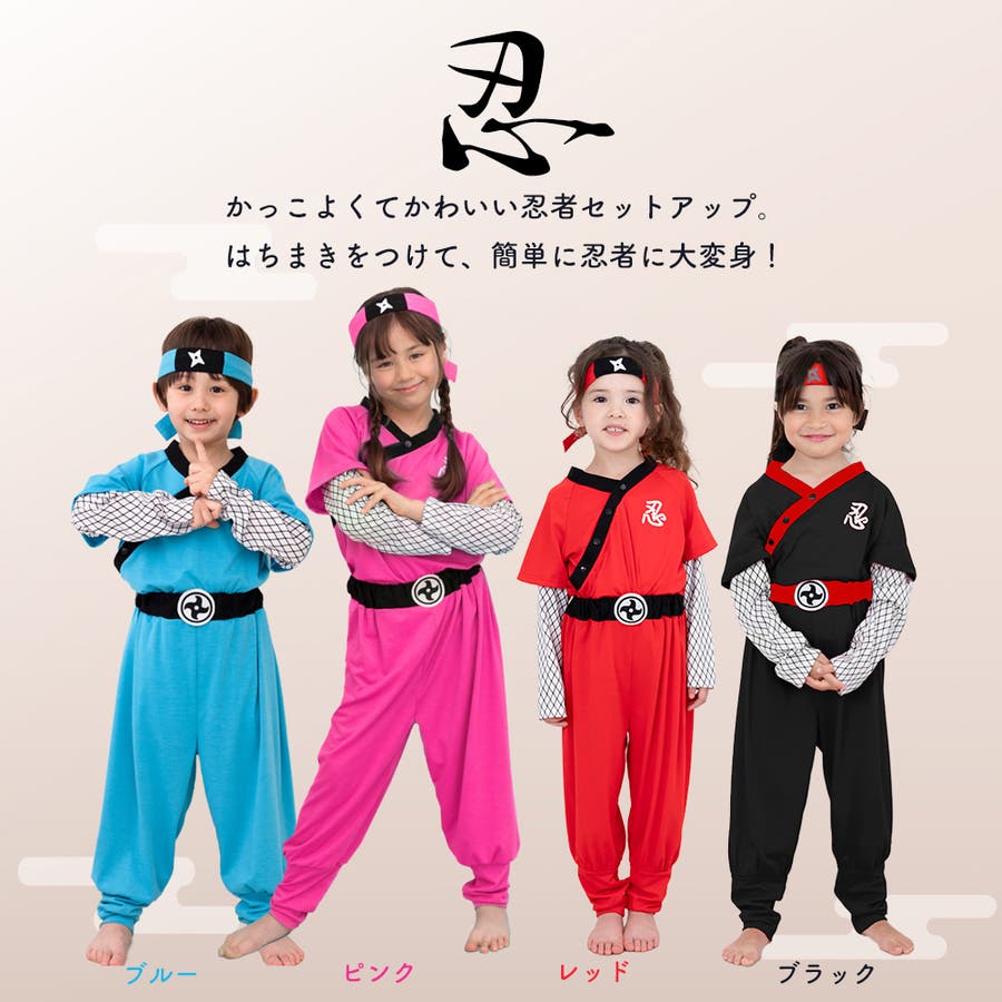 ブライトララ ハロウィーン コスプレ ハロウィン 衣装 子供 仮装 忍者 忍 ニンジャ ninja キッズ 男の子 女の子 男女兼用 変身 なりきり コス ハロウィーン お遊戯会 劇 クリスマス 記念日 誕生日 文化祭 小学生 幼稚園 和服 黒 ブラック 赤 レッド ブルー ピンク 100 110 120 130 cm