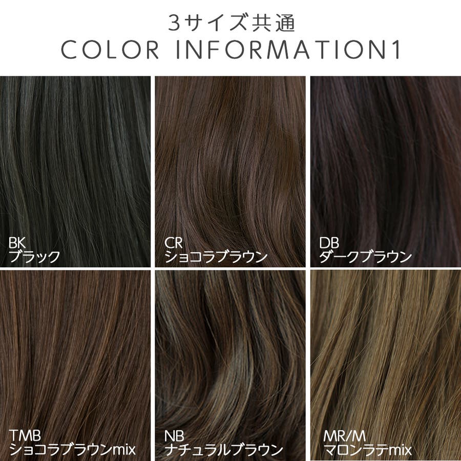 | カラー | BKブラック / CRショコラ / DBダークブラウン / TMBショコラブラウンmix / NBナチュラルブラウン / MR/Mマロンラテmix / CFカフェオレ / M30ミックスブラウン / M33Lオレンジブラウン / KG暗いゴールド |