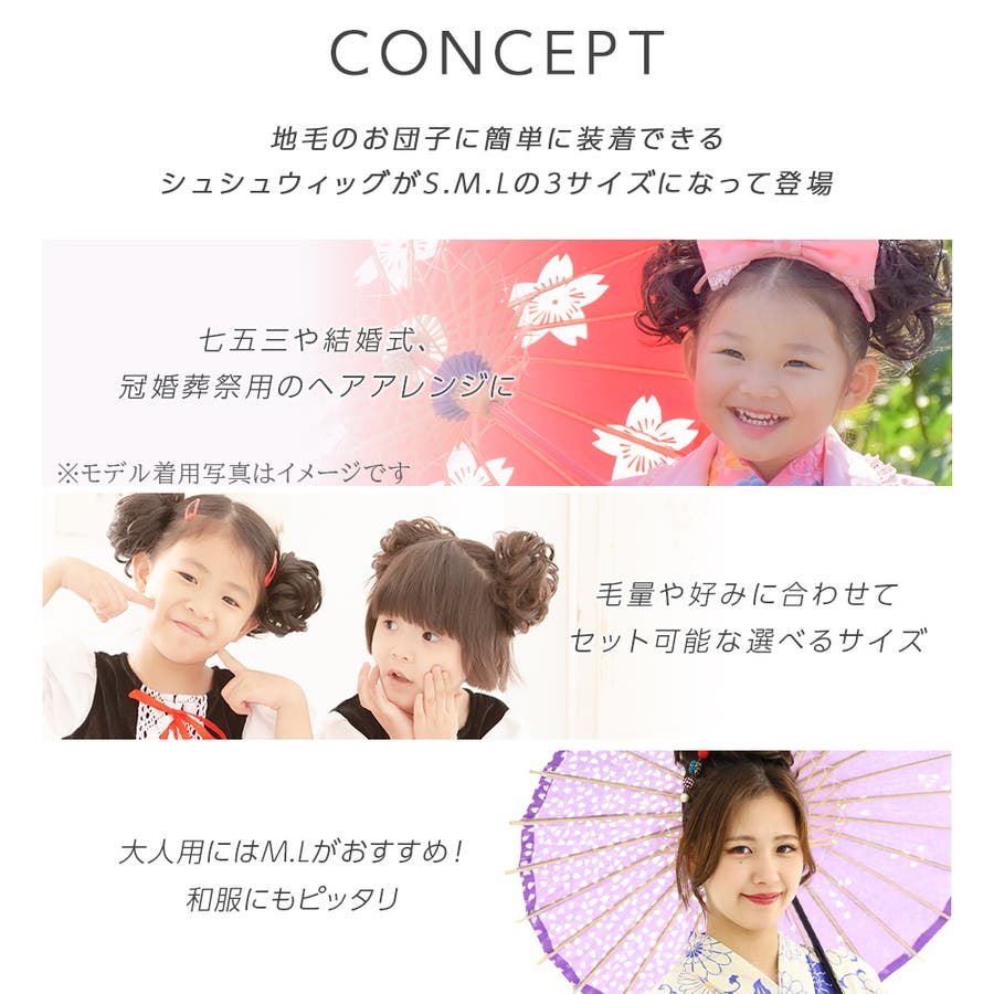 お子様の七五三や結婚式などのパーティーに簡単装着のシュシュウィッグでヘアアレンジはいかがですか?もちろん大人の方も着用可能。