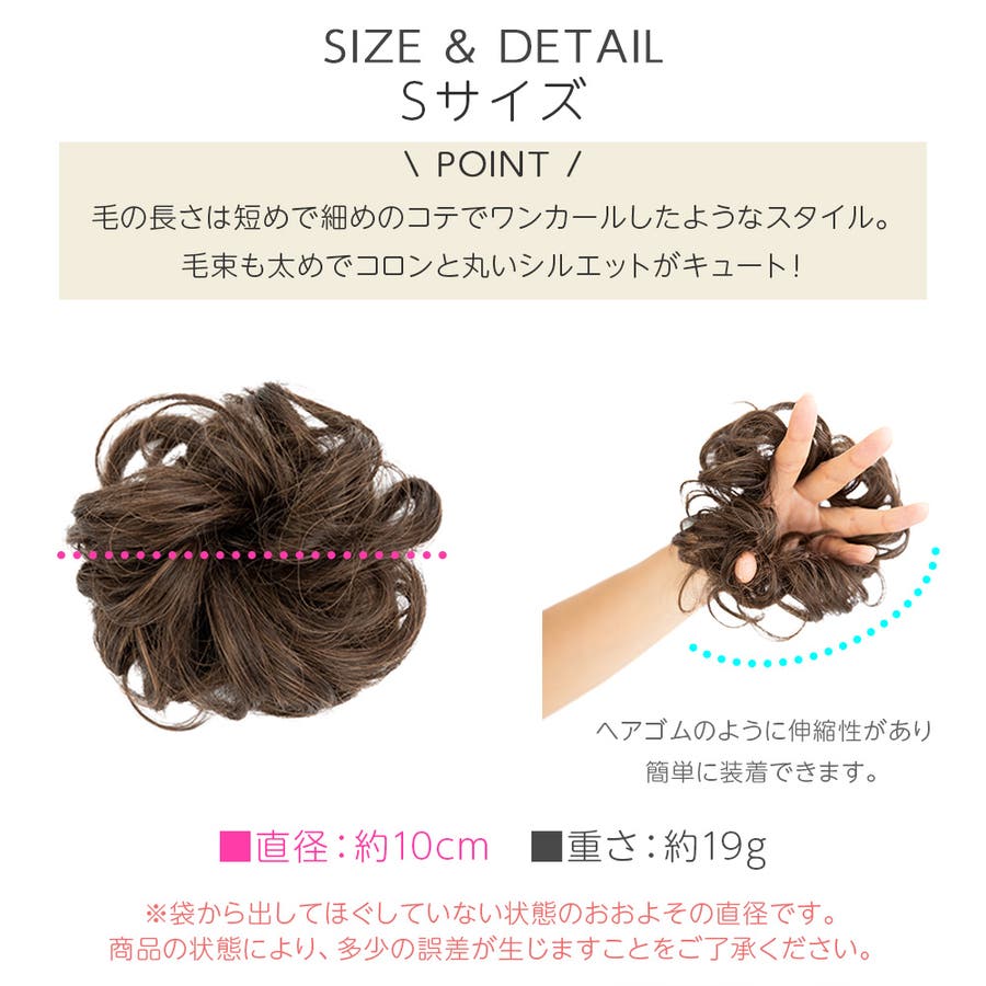 Sサイズではボリューム不足で小さいお団子しか作れず、一緒に買ったMサイズが丁度良かったです。さん (30代 / 女性 )購入アイテム:サイズ Sサイズカラー M30ミックスブラウン