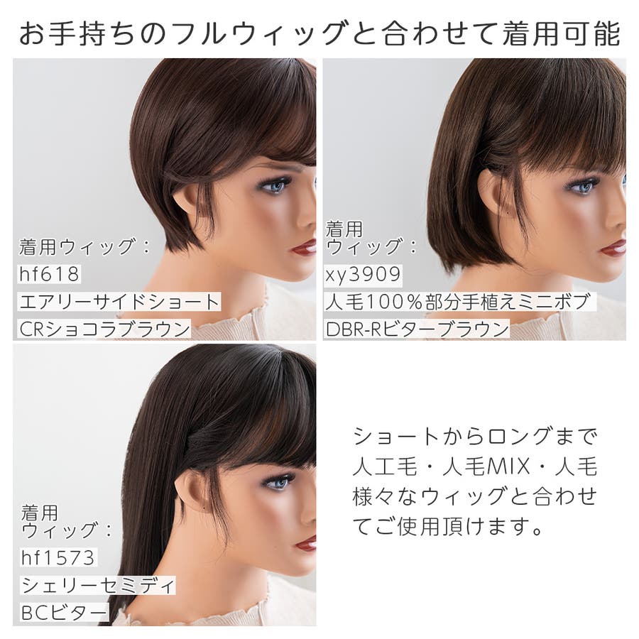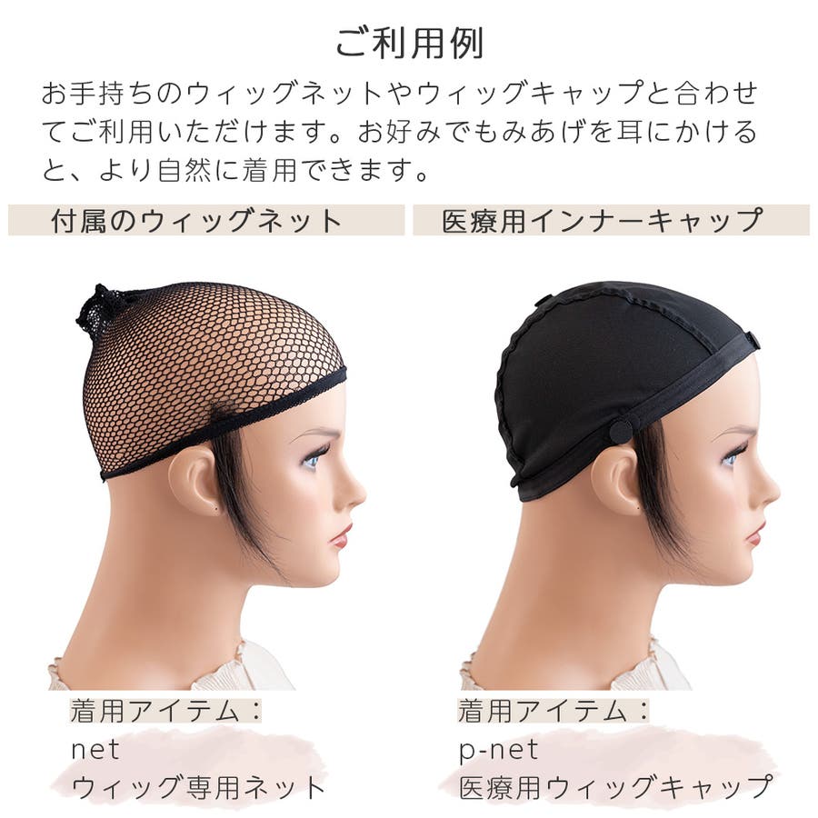 もみあげウィッグを付けることによって、風がふいたり、耳かけをしても自然なウィッグスタイルを楽しんでいただけます。ウィッグでヘアアレンジをするときに気になる耳回り対策におすすめです。