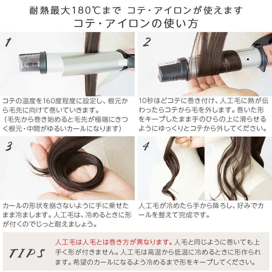 ドライヤー、コテ、アイロン等で好みの髪型に整えることができます。(耐熱最大温度180度まで)※1