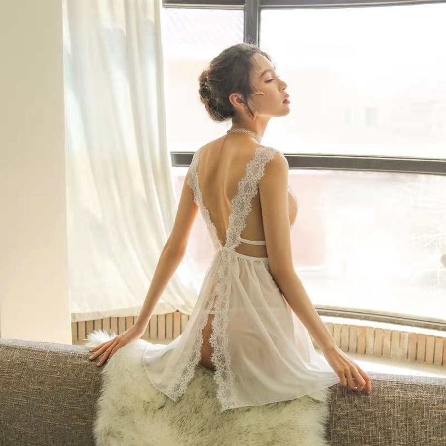 セクシー雑貨 バックオープンレーシーベビードール&Tバックショーツセット