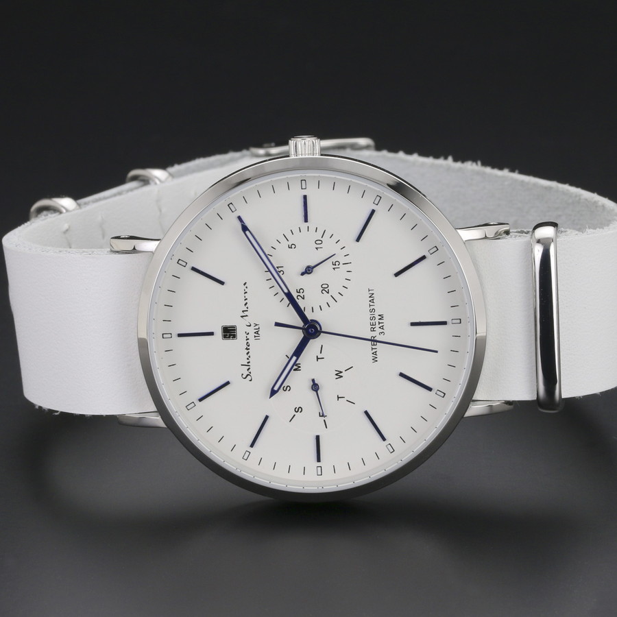 ■仕様:クォーツムーブメント(日本製)、月差±20秒、3気圧防水、曜日・日付表示