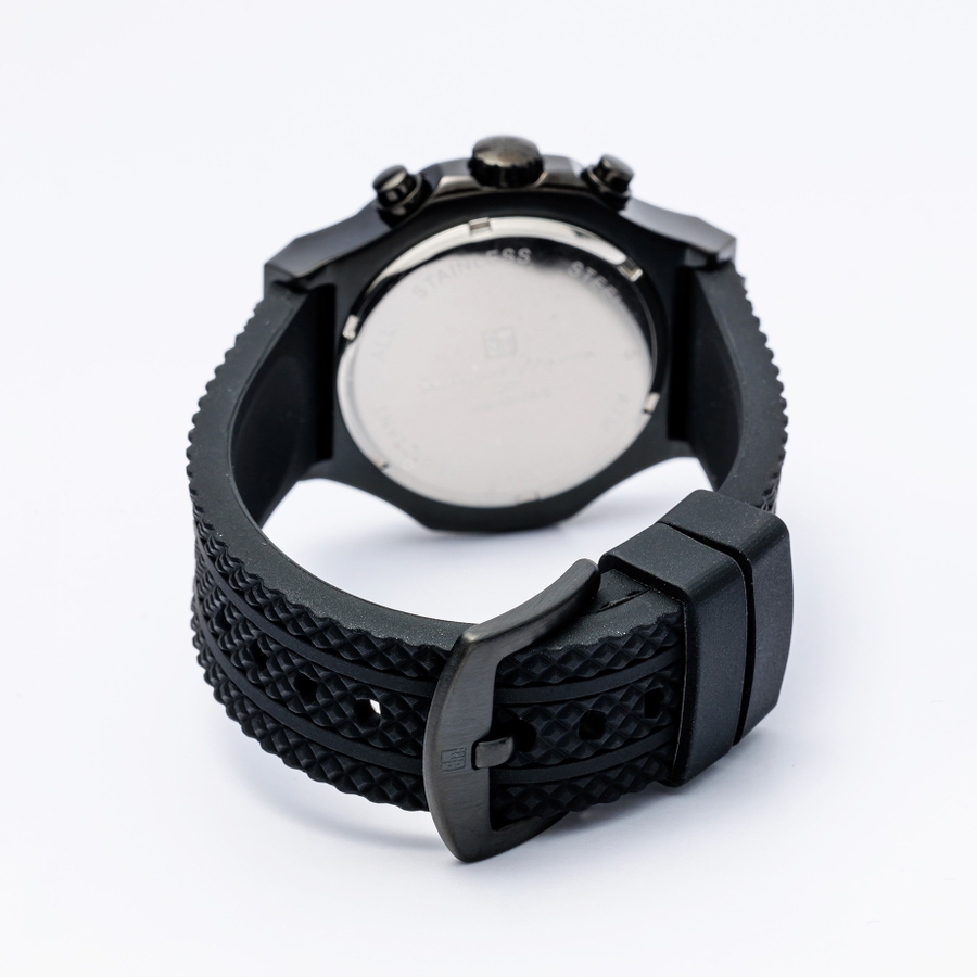 ■仕様:クォーツムーブメント(日本製)、月差±20秒、5気圧防水、クロノグラフ(60分積算計、1/1秒計)、24時間計、日付表示