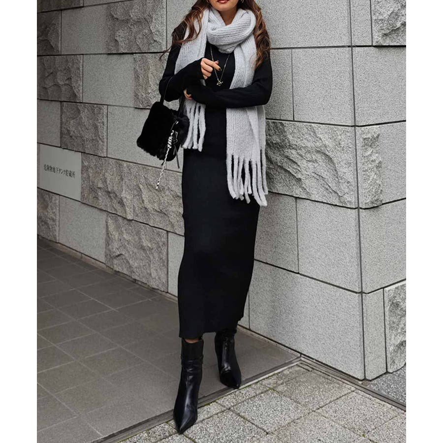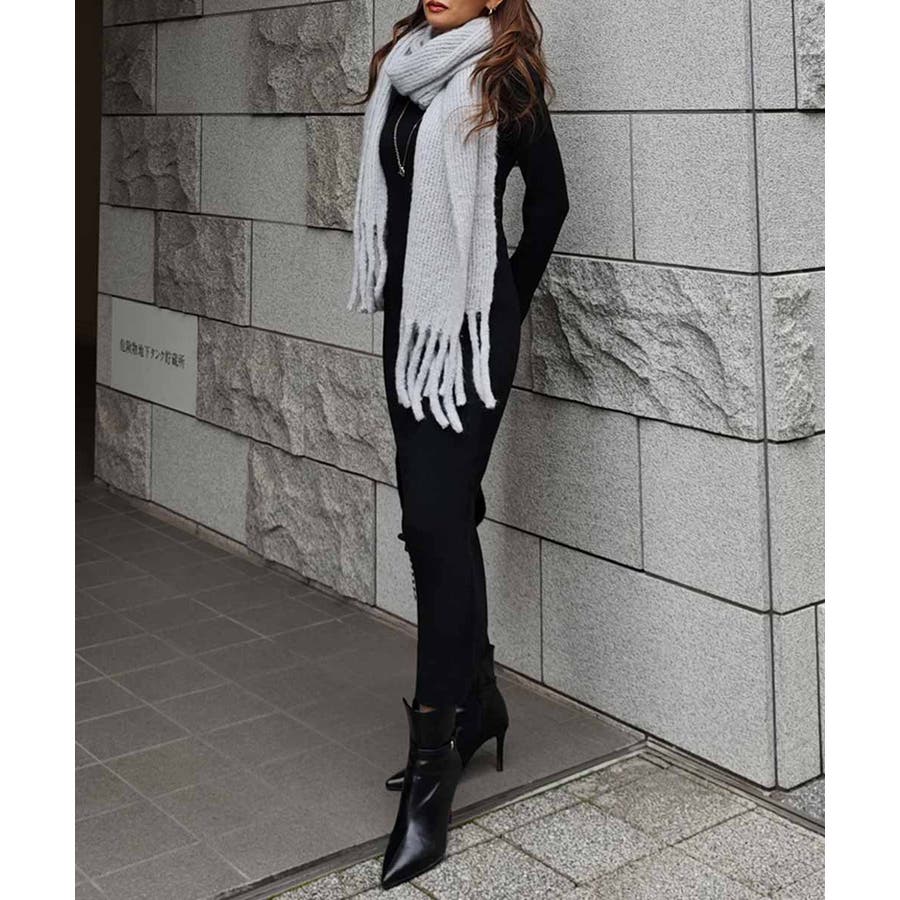 フリンジニットスカーフesutoreja マフラー スタイルアップ