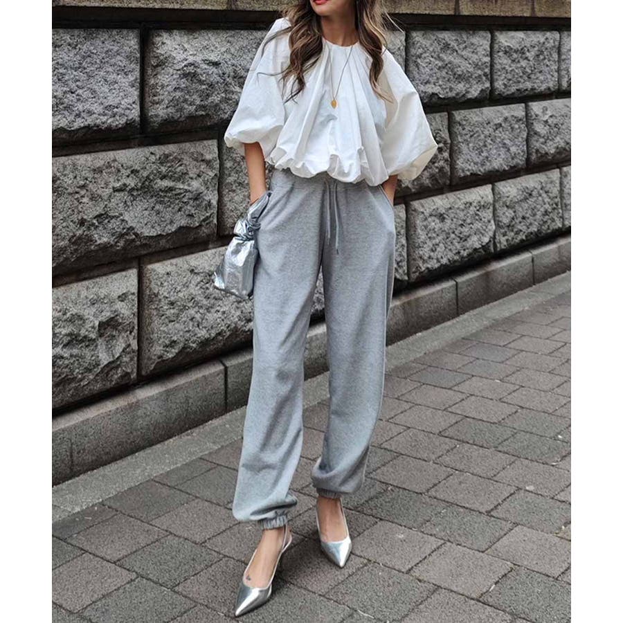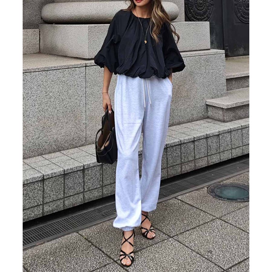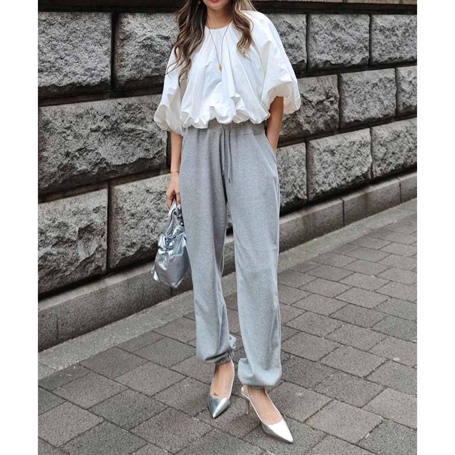 ハイウエストスウェットパンツesutoreja ボトム スタイルアップ
