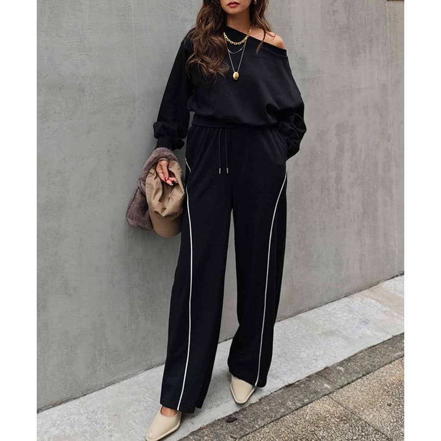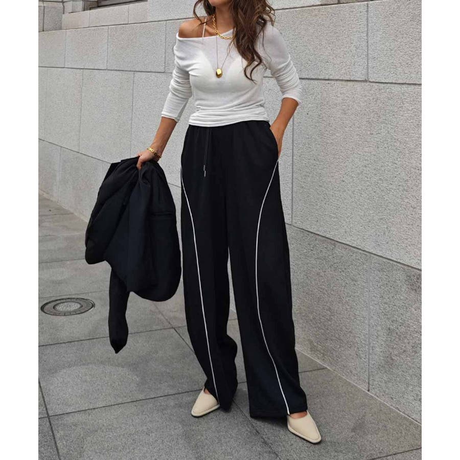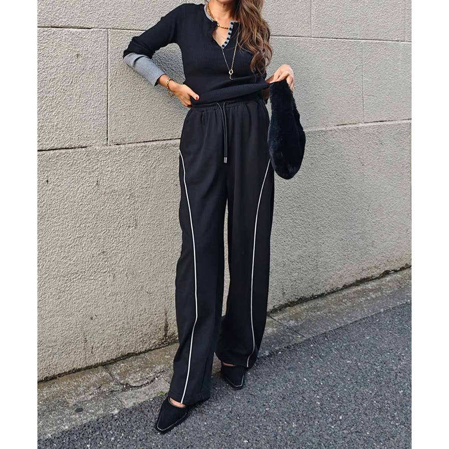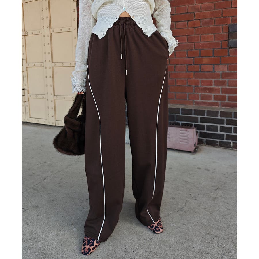 パイピングスウェットワイドパンツ esutoreja パンツ