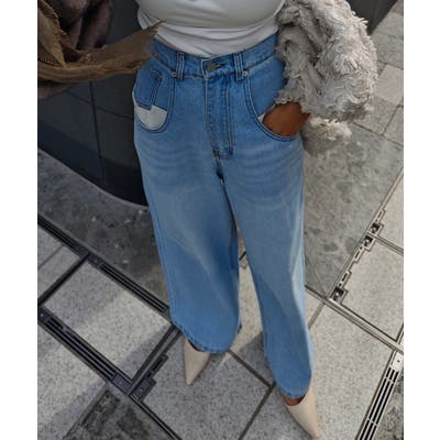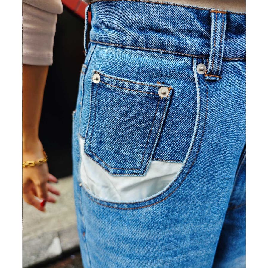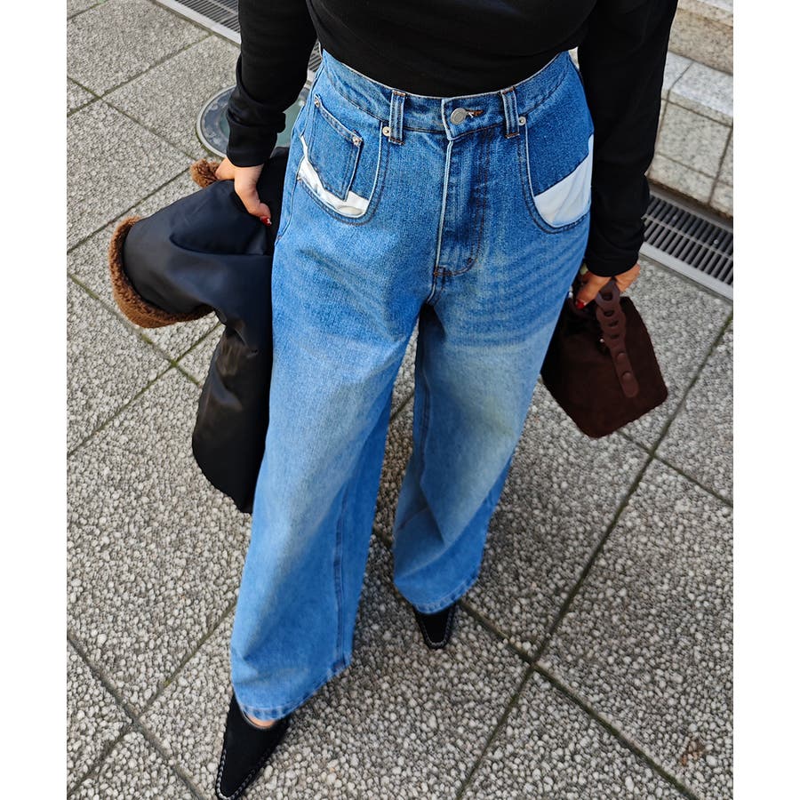 オーバーポケットデザインデニムesutoreja パンツ スタイルアップ