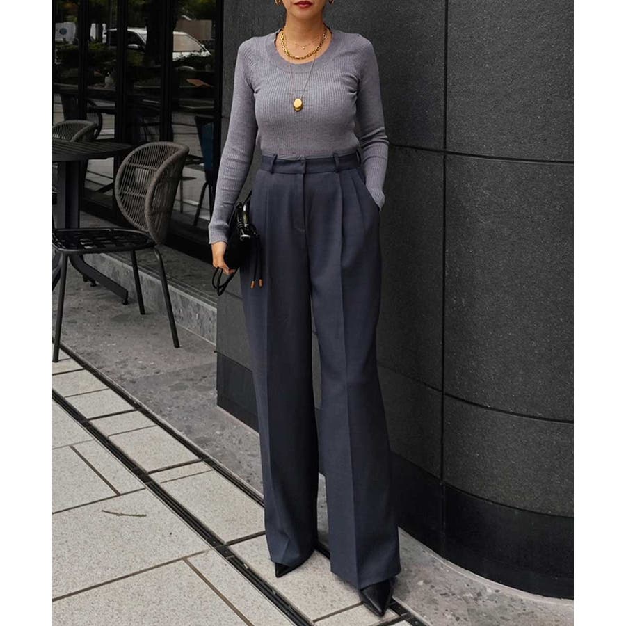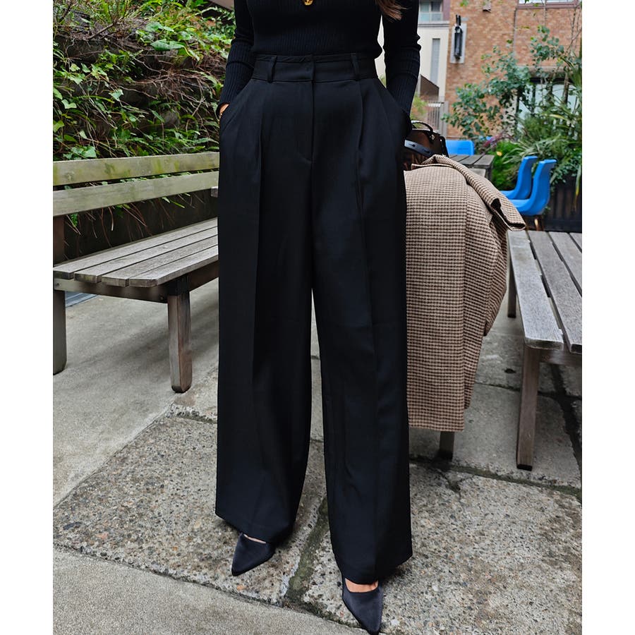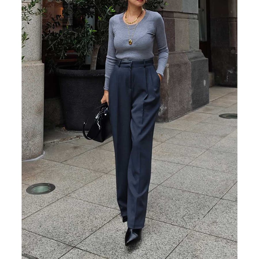 深く入った2本のタックは立体感があるので、履くだけで腰回りを細く、脚長に見せてくれます。