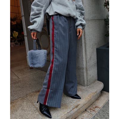 サイドラインストライプワイドパンツesutoreja ボトム スタイルアップ