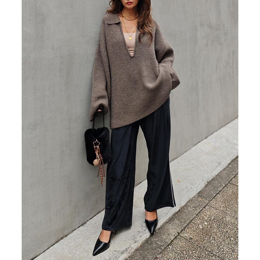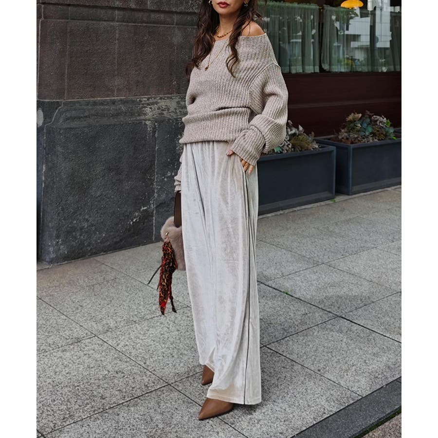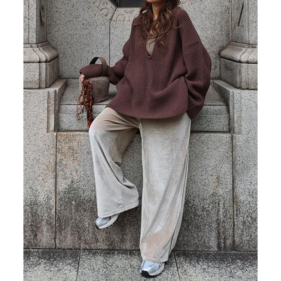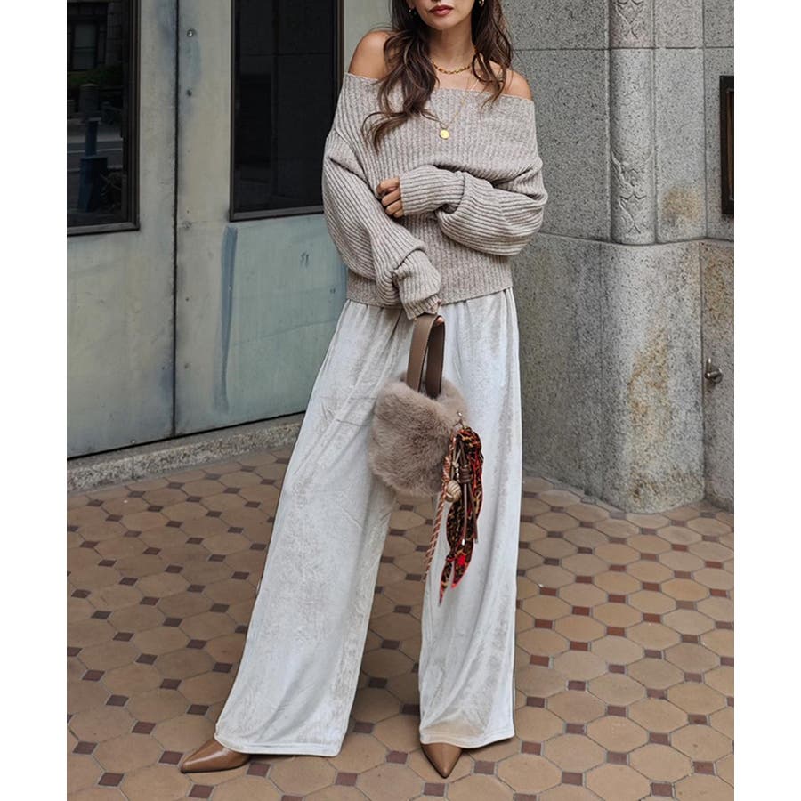 裾にかけて落ち感があり、ボリュームを抑えたワイドシルエットが大人の抜け感を演出。