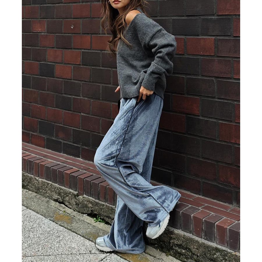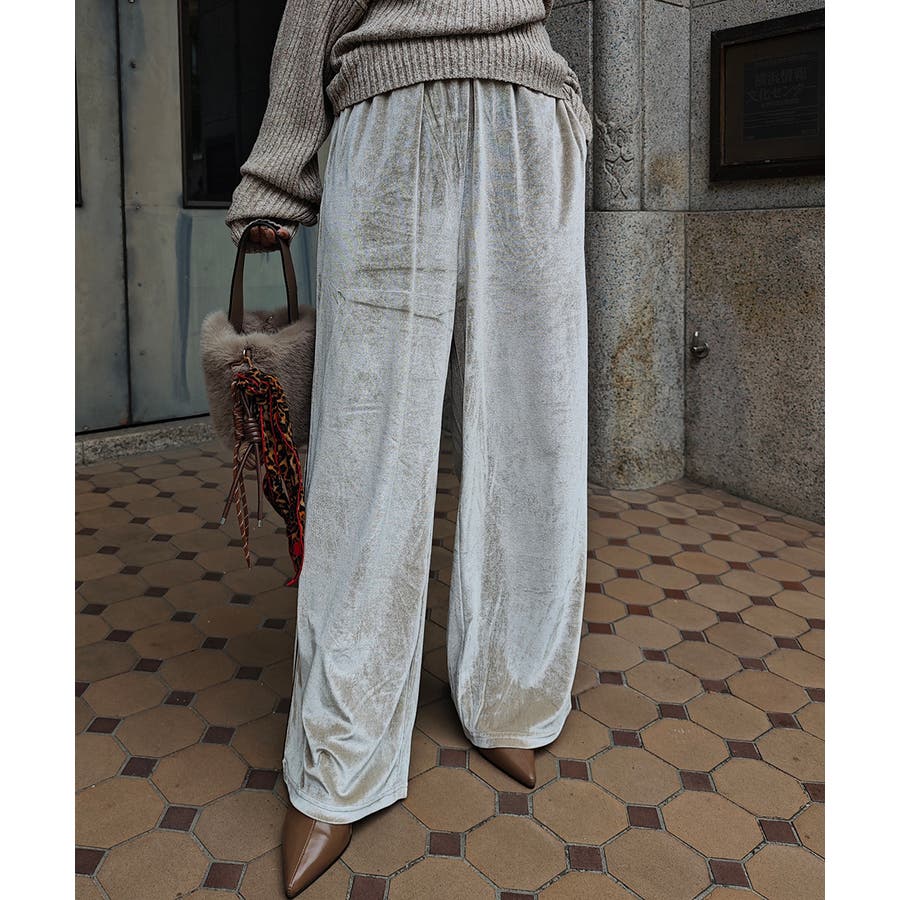 サイドラインベロアイージーパンツesutoreja ボトム スタイルアップ