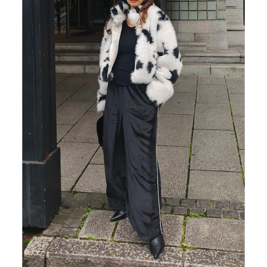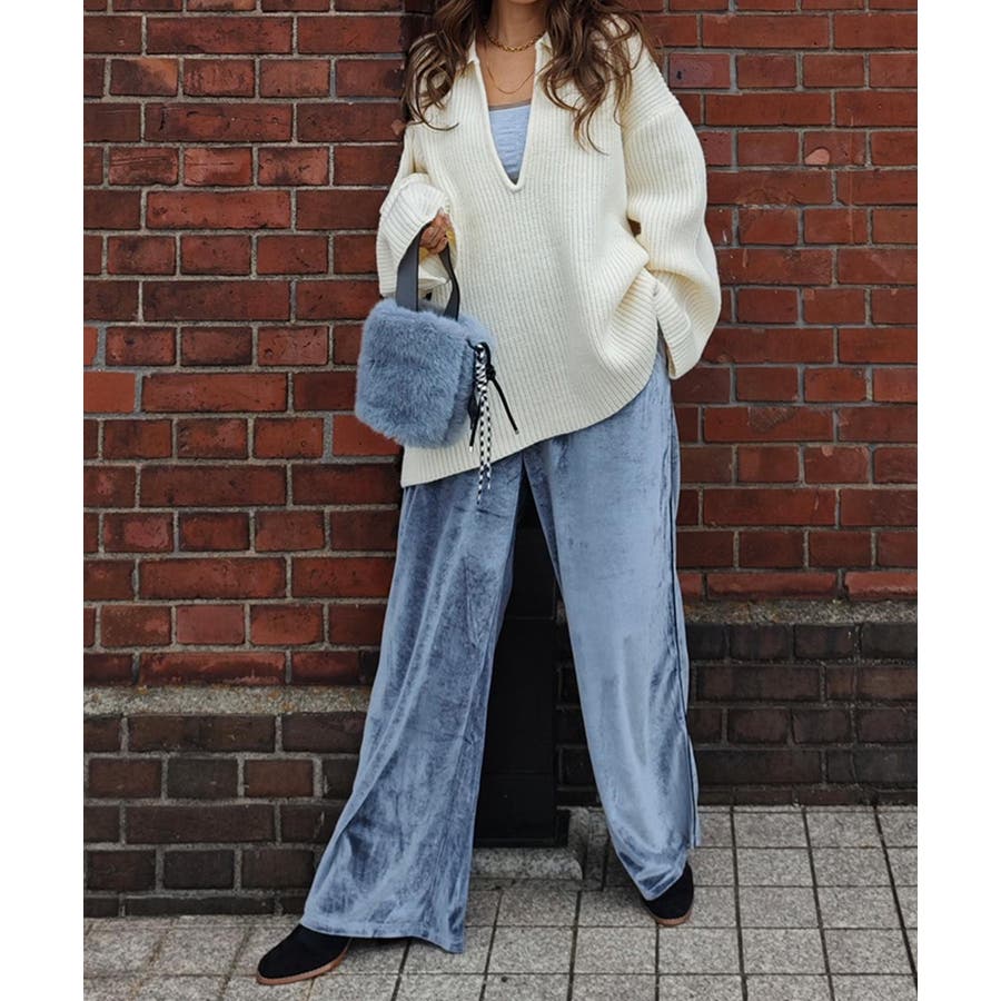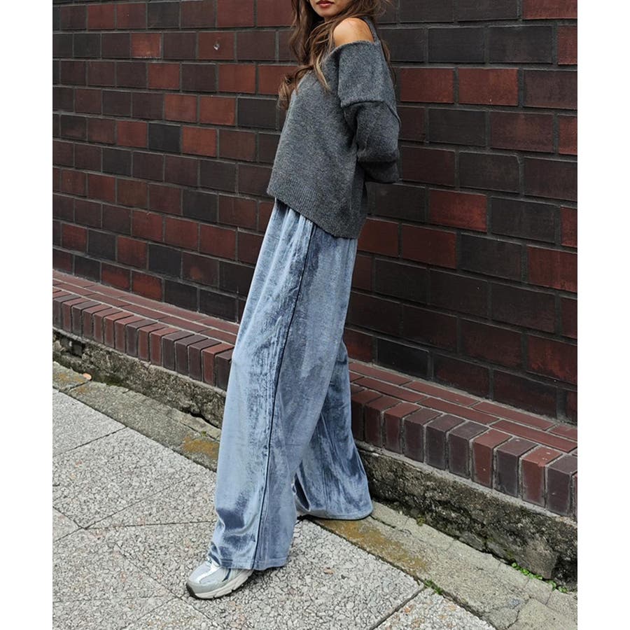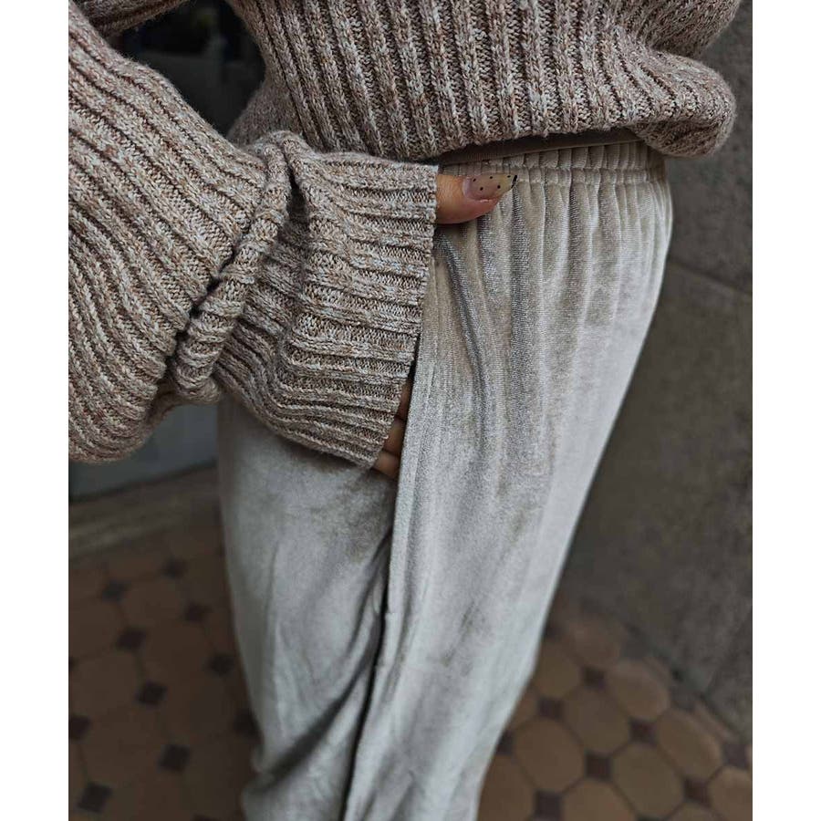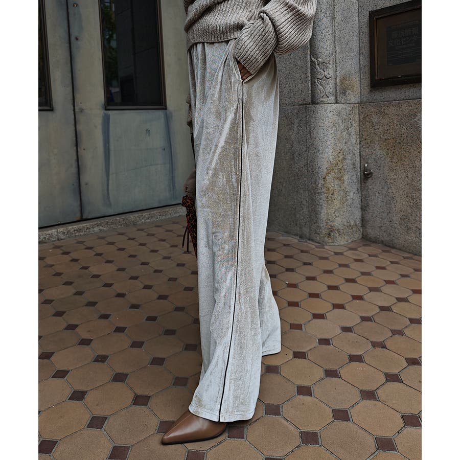 ベロア素材にサイドラインがスタイリッシュなパンツ