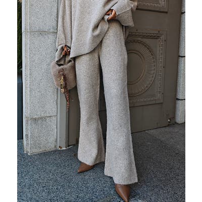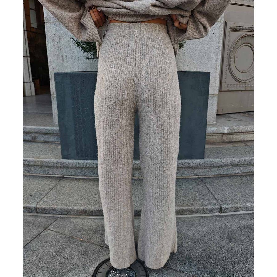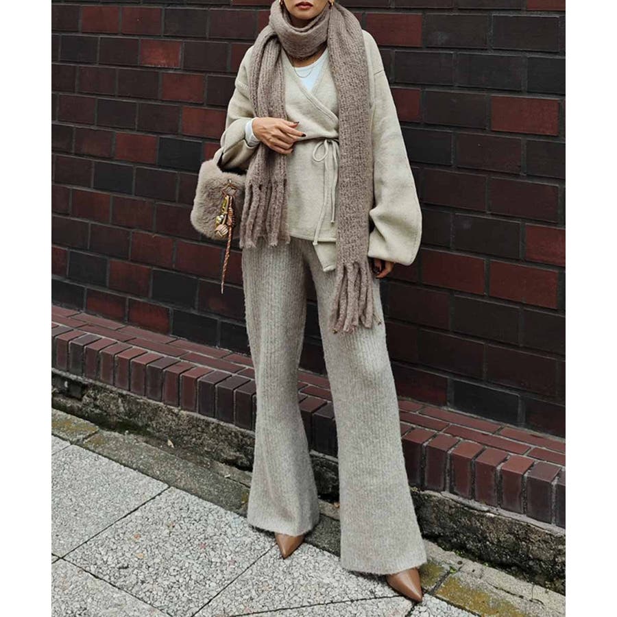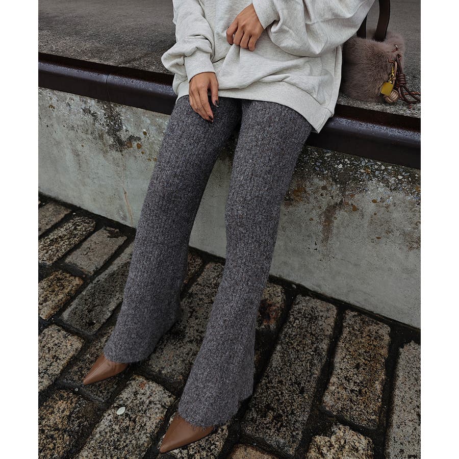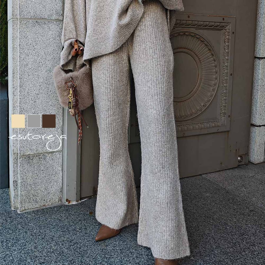 ミックスニットフレアパンツesutoreja ボトム スタイルアップ