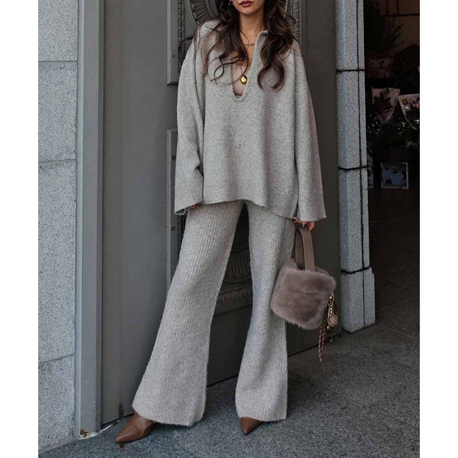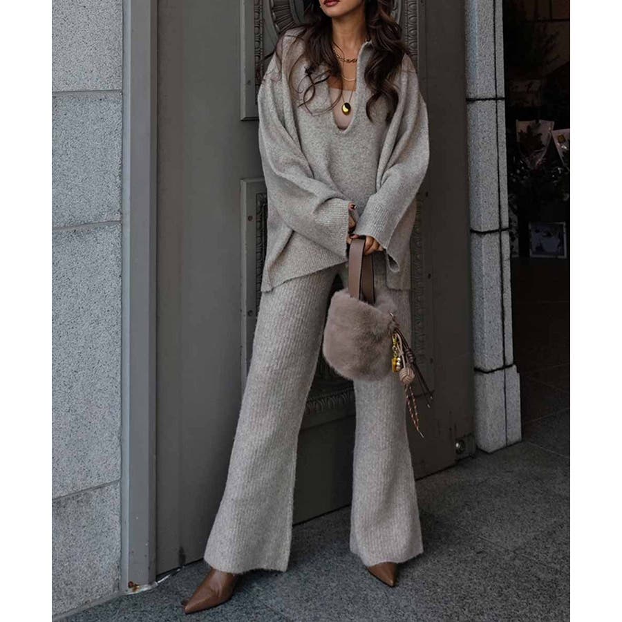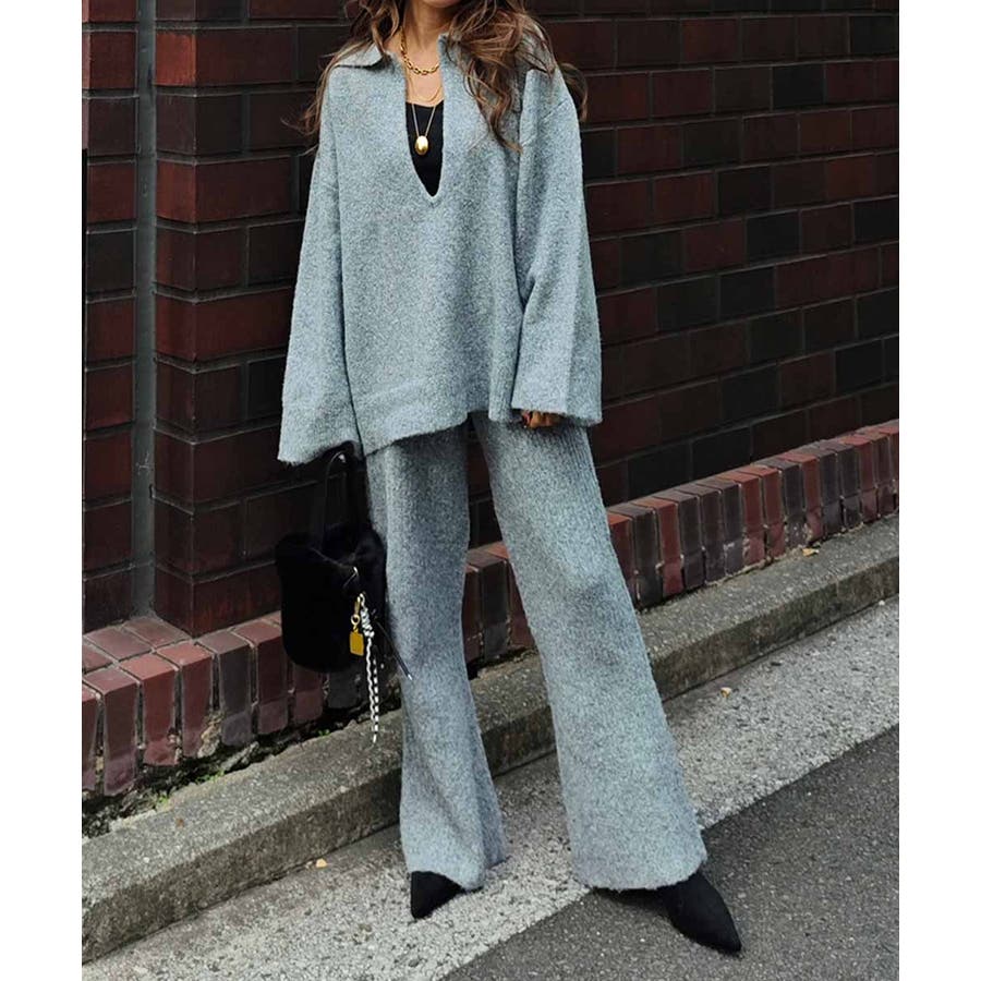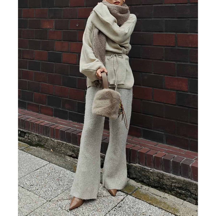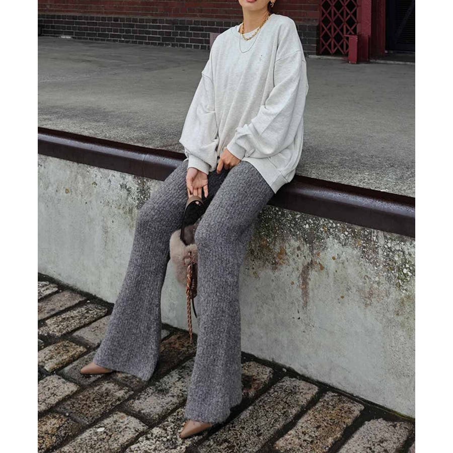 履き心地よく、スタイルアップが叶うニットフレアパンツ