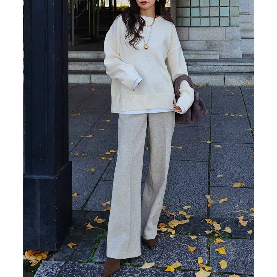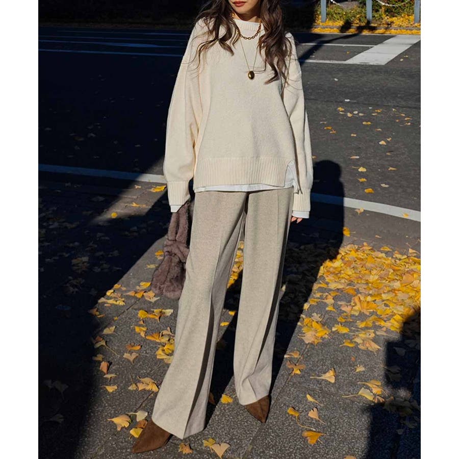 暖かみのある生地感のスラックスパンツ